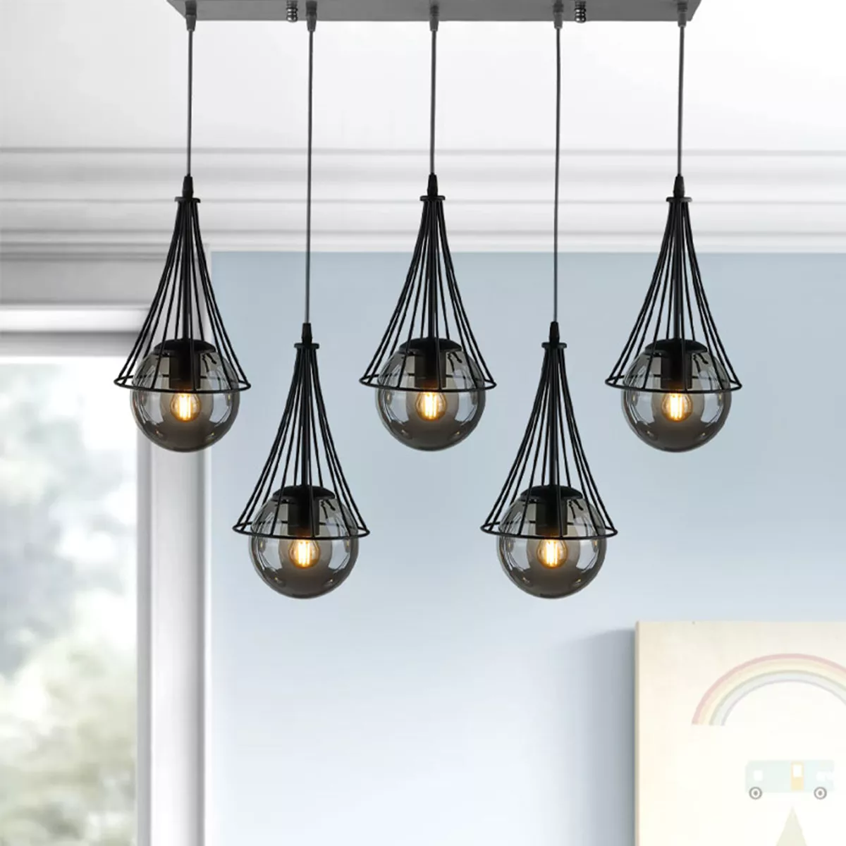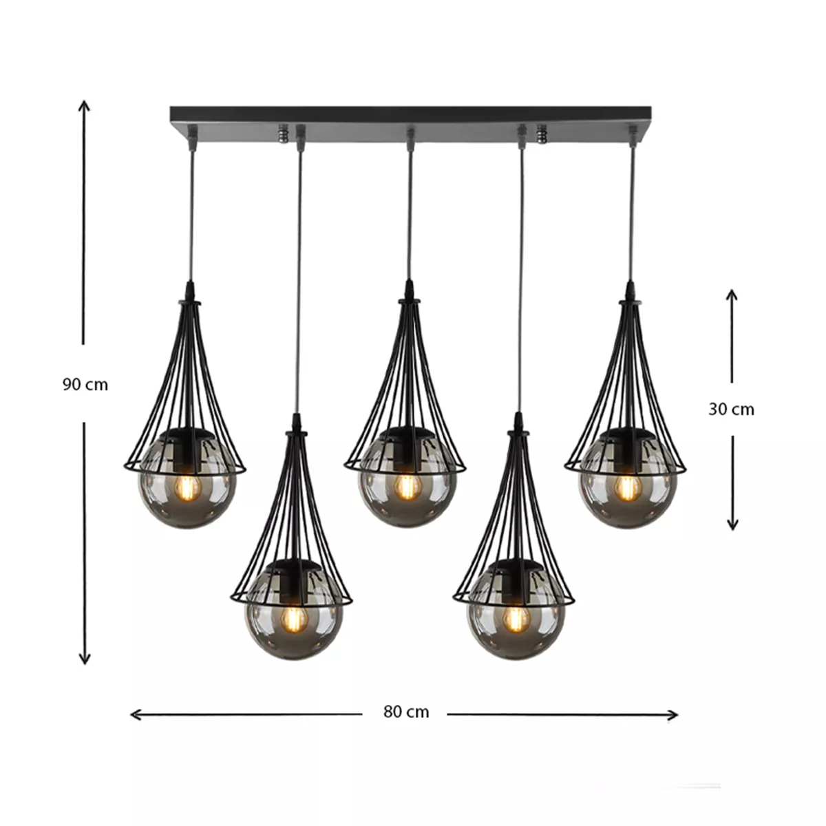 Φωτιστικό οροφής Chavi Megapap E27 μεταλλικό πεντάφωτο χρώμα μαύρο 80x10x90εκ.