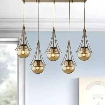 Φωτιστικό οροφής Chavi Megapap E27 μεταλλικό πεντάφωτο χρώμα χρυσό 80x10x90εκ.