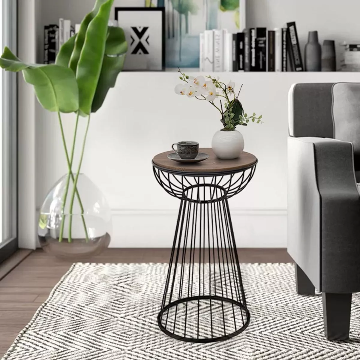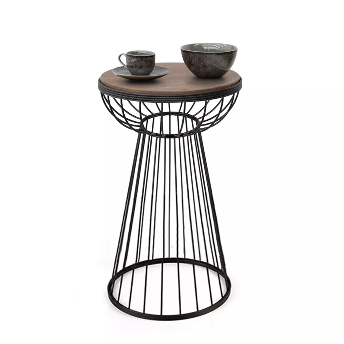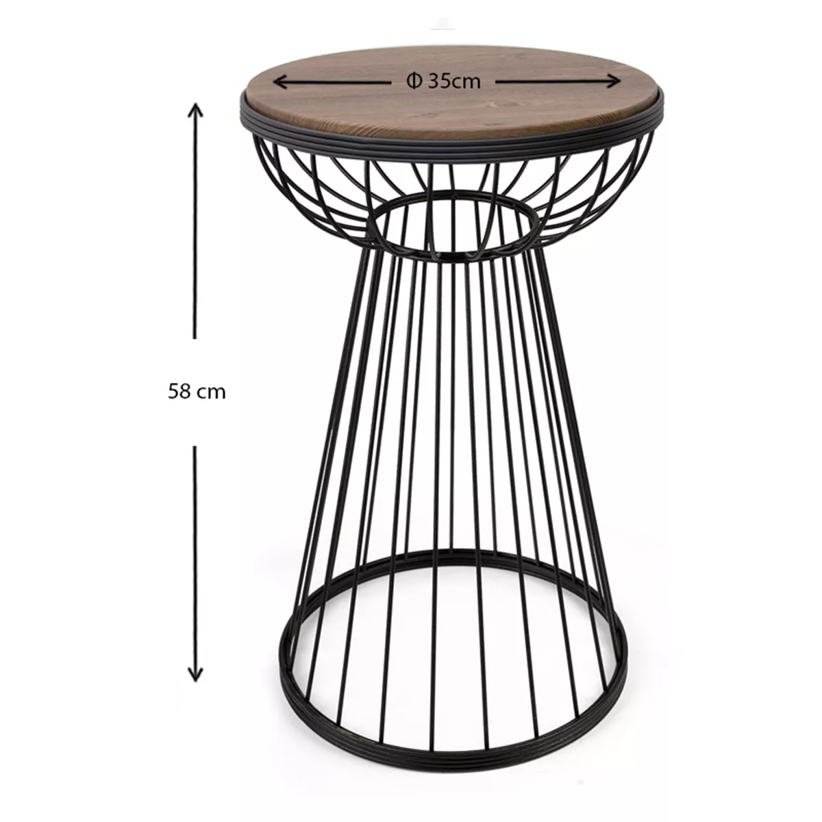 Βοηθητικό τραπεζάκι Mantare Megapap μεταλλικό - Mdf χρώμα μαύρο - καρυδί 35x35x58εκ.