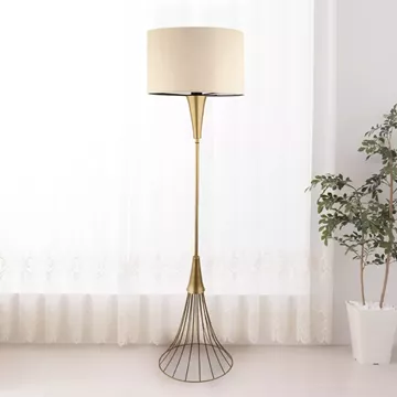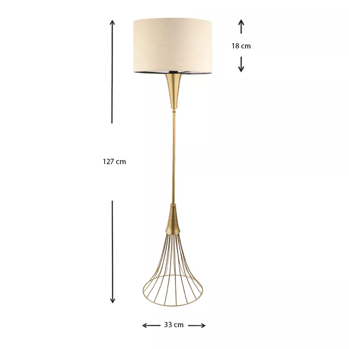 Φωτιστικό δαπέδου Olde Megapap E27 μεταλλικό - υφασμάτινο χρώμα χρυσό - μπεζ 33x33x127εκ.