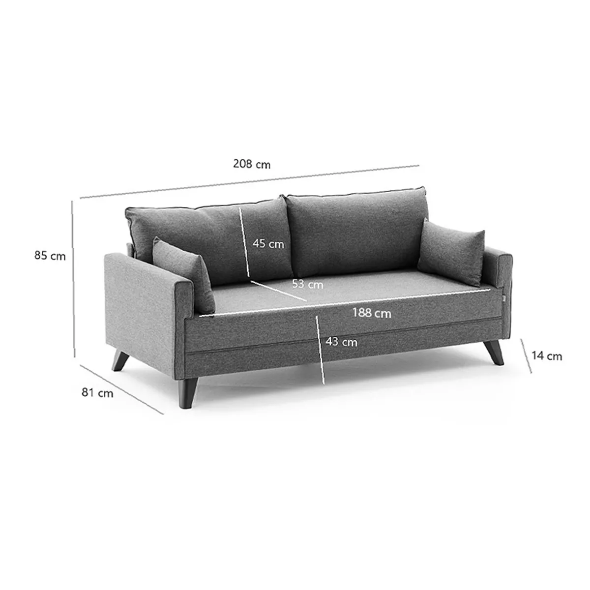 Καναπές Bella Megapap τριθέσιος υφασμάτινος χρώμα καφέ 208x81x85εκ.