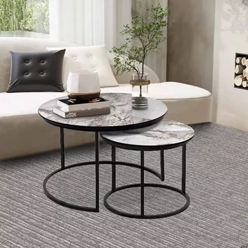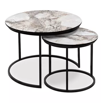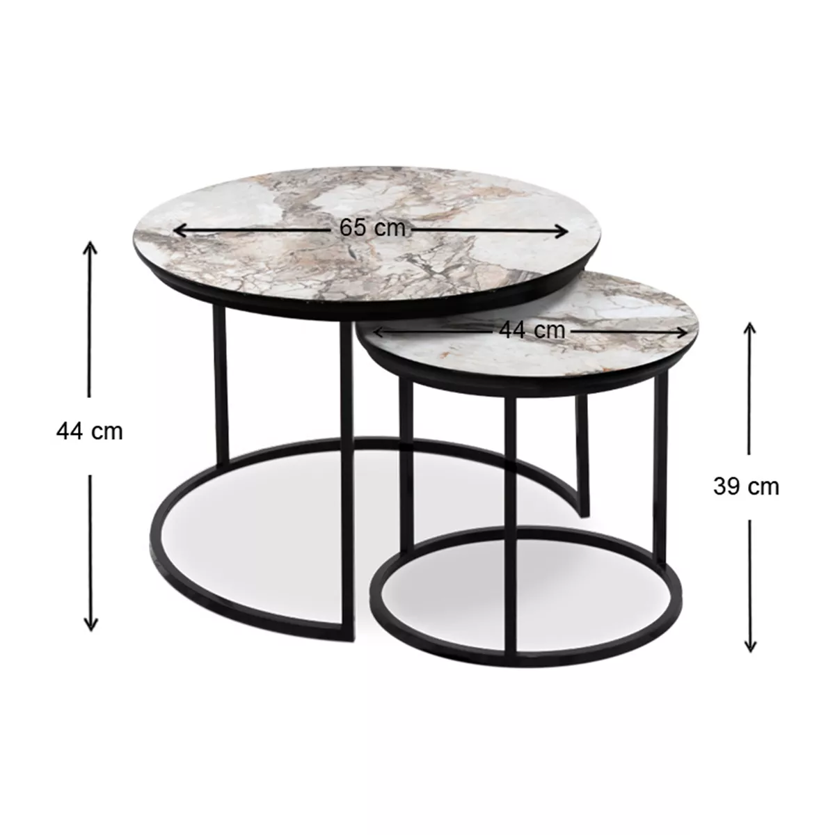 Τραπεζάκια σαλονιού Gary Megapap Mdf - μεταλλικό χρώμα μπεζ εφέ μαρμάρου 65x65x44εκ.