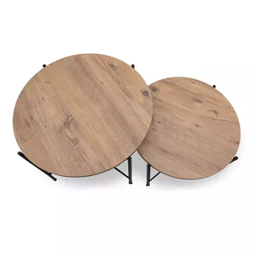 Σετ τραπεζάκια σαλονιού Zayden Megapap 2 τμχ μεταλλικό - μελαμίνης χρώμα pine oak 65x65x52εκ.