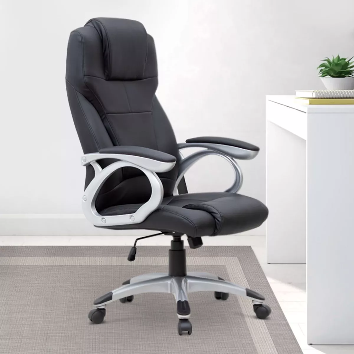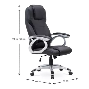Καρέκλα γραφείου διευθυντική Luca Megapap από τεχνόδερμα χρώμα μαύρο 65x60x118/128εκ.