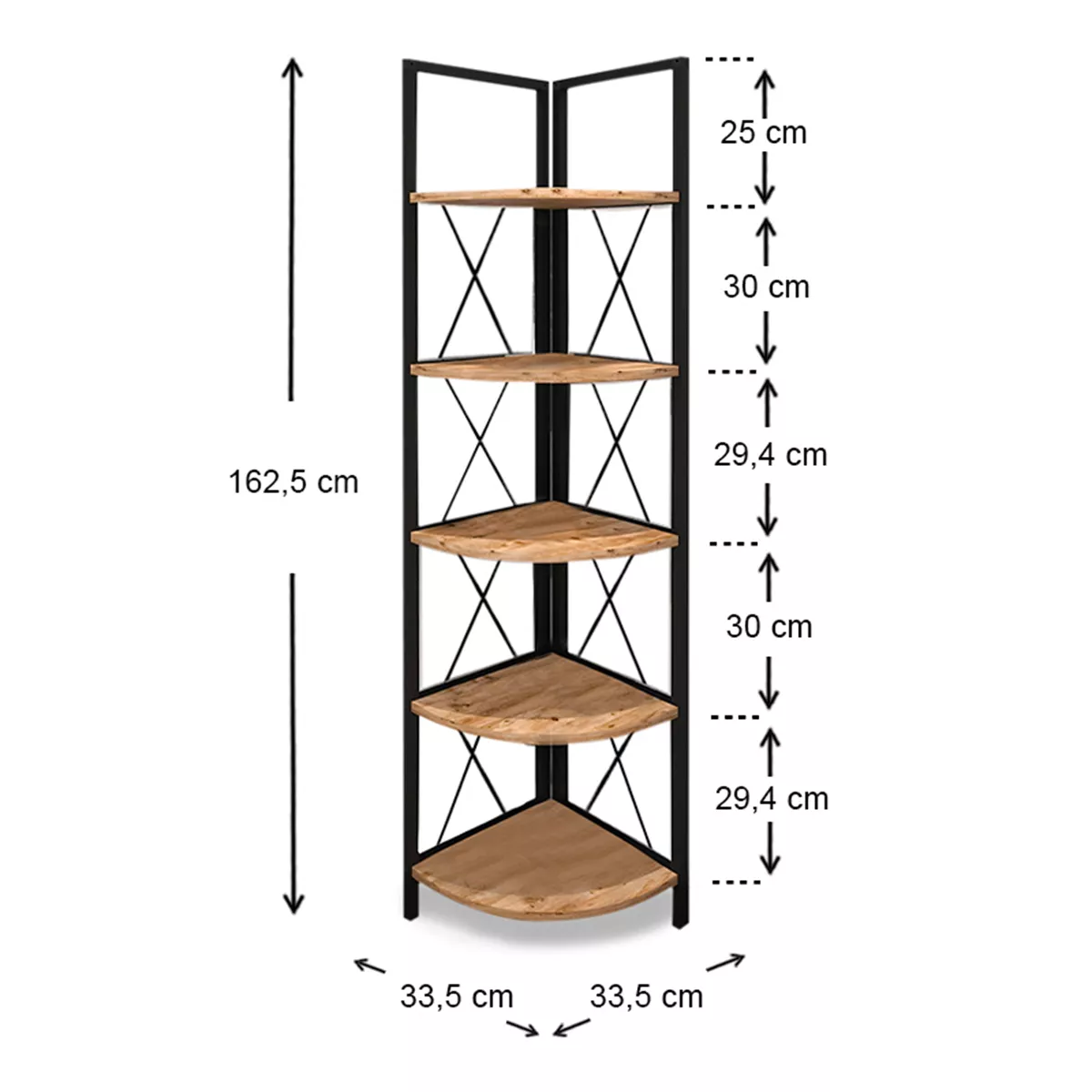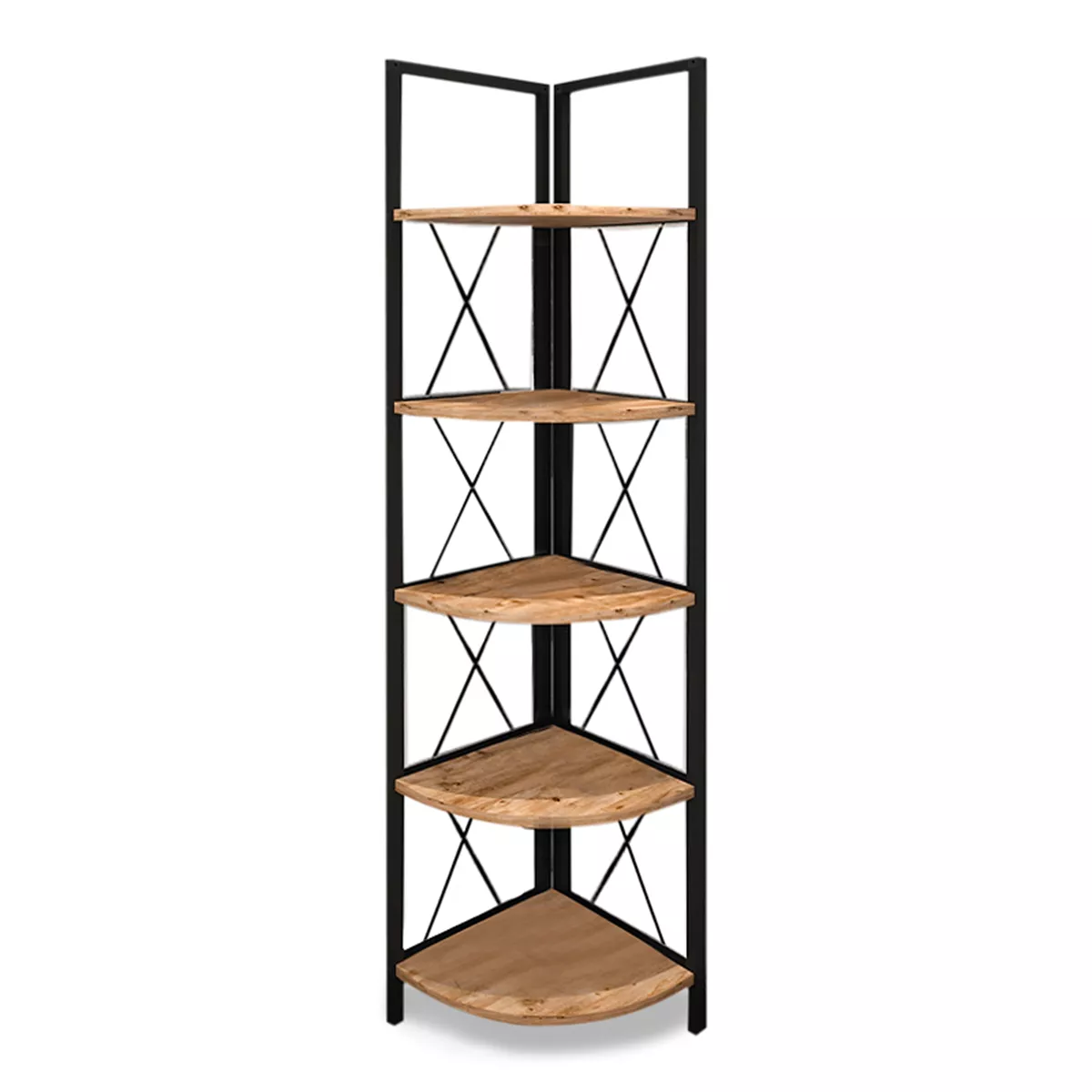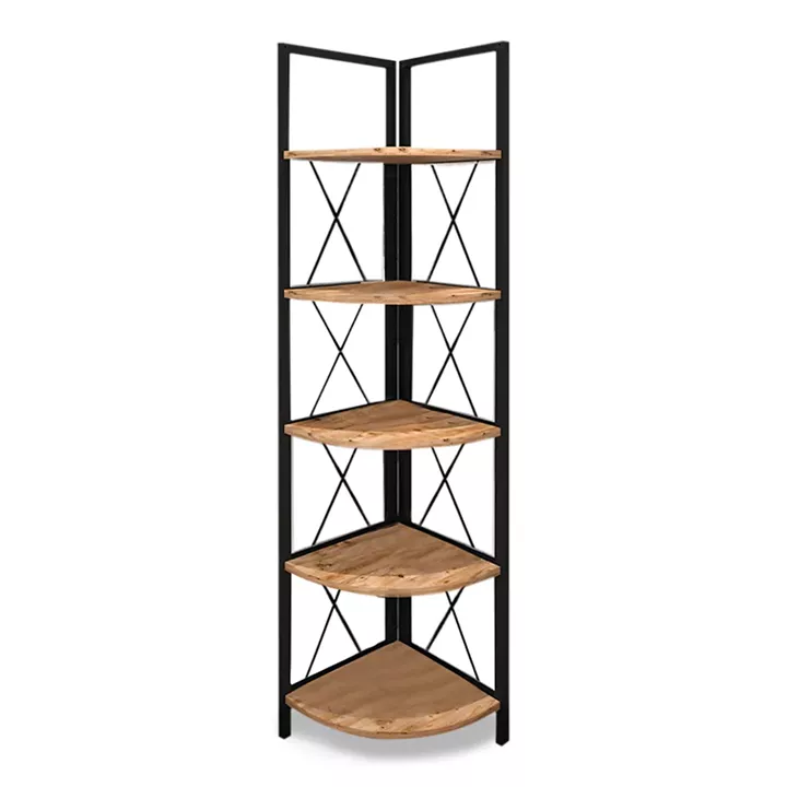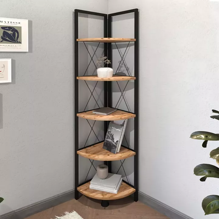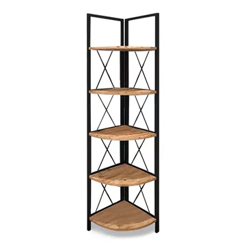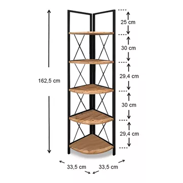 Βιβλιοθήκη γωνιακή Kelsie Megapap μεταλλική - μελαμίνης χρώμα μαύρο - pine oak 33x33x162εκ.