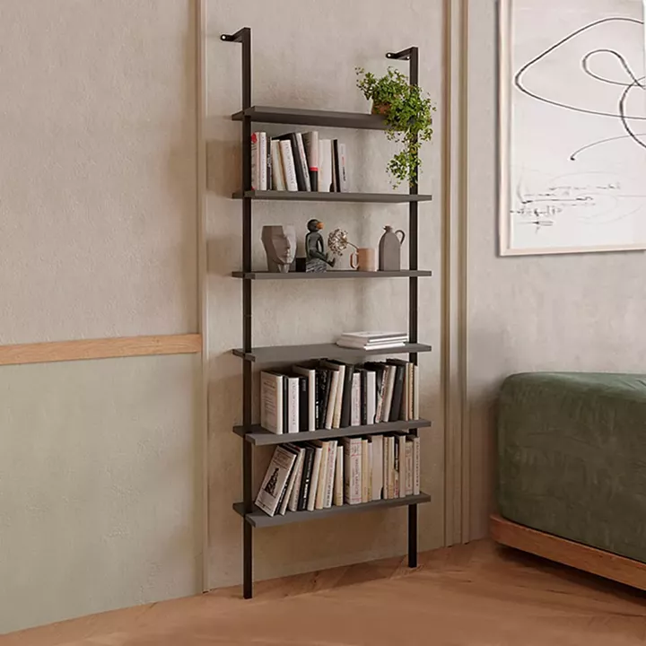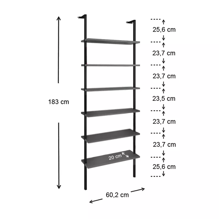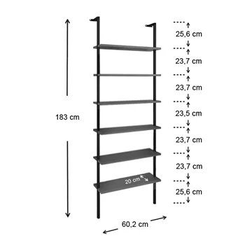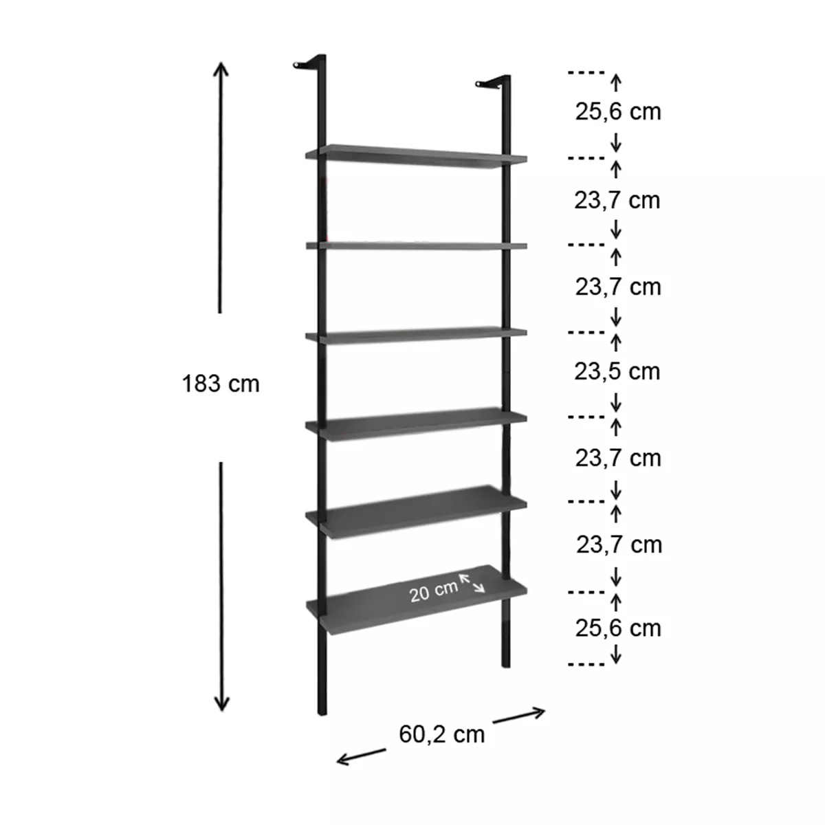 Βιβλιοθήκη τοίχου Madison Megapap μεταλλική - μελαμίνης χρώμα μαύρο - ανθρακί 60x20x183εκ.