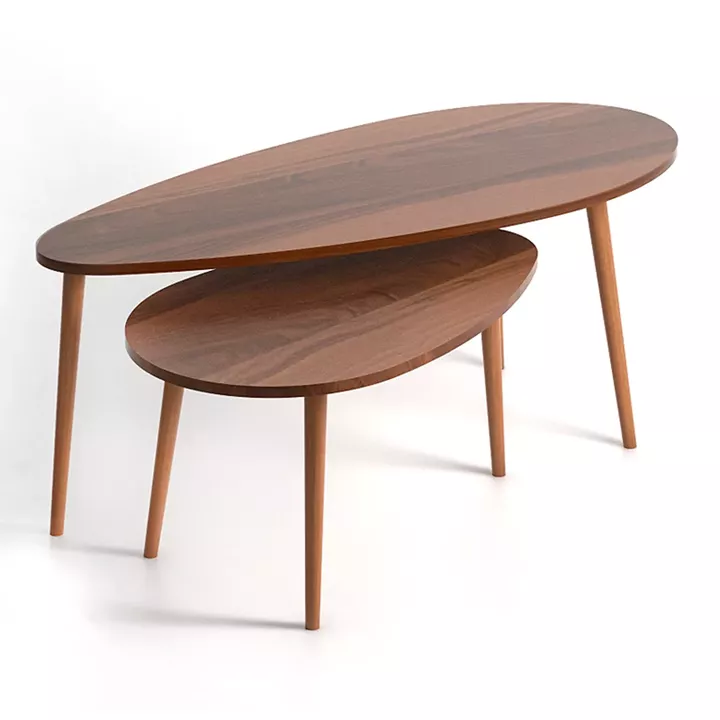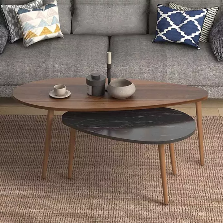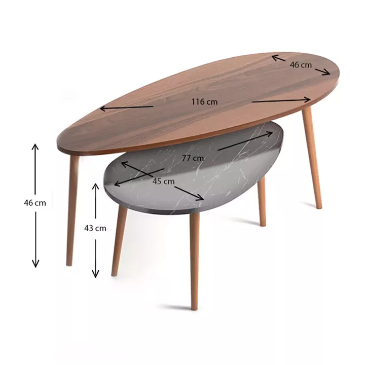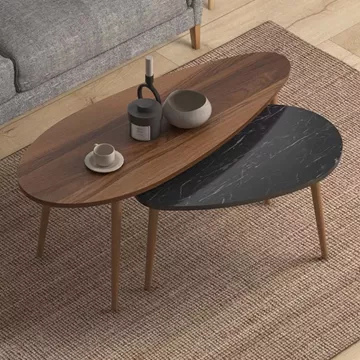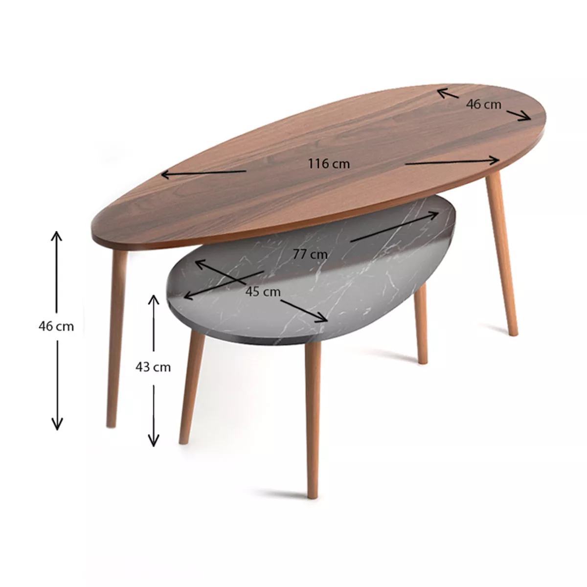 Βοηθητικά τραπεζάκια Elips Megapap από μελαμίνη χρώμα καρυδί - μαύρο εφέ μαρμάρου 116x46x46εκ.