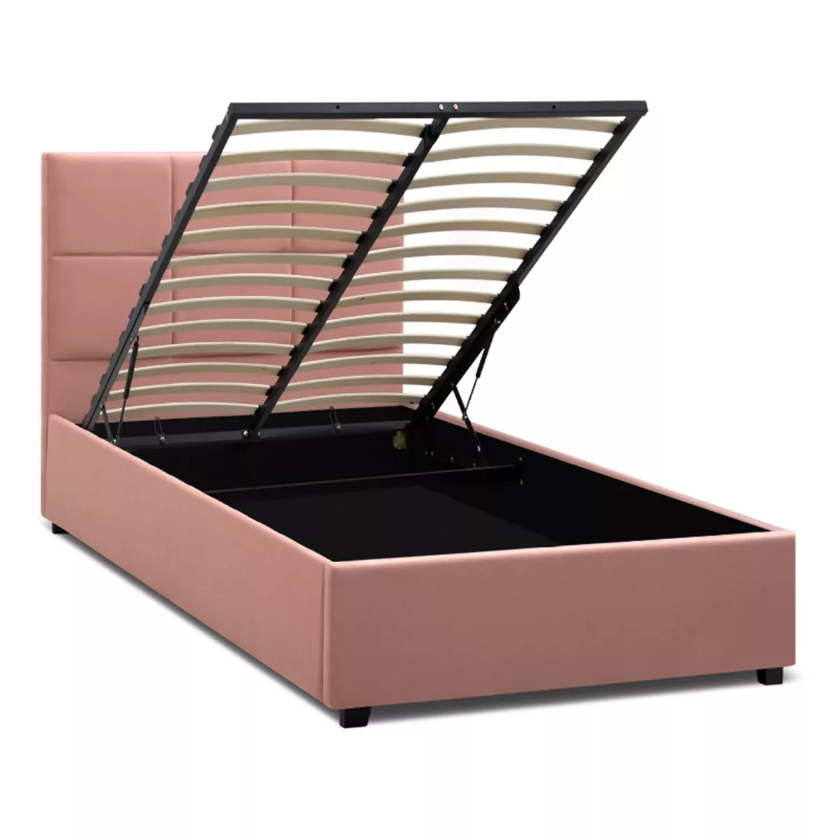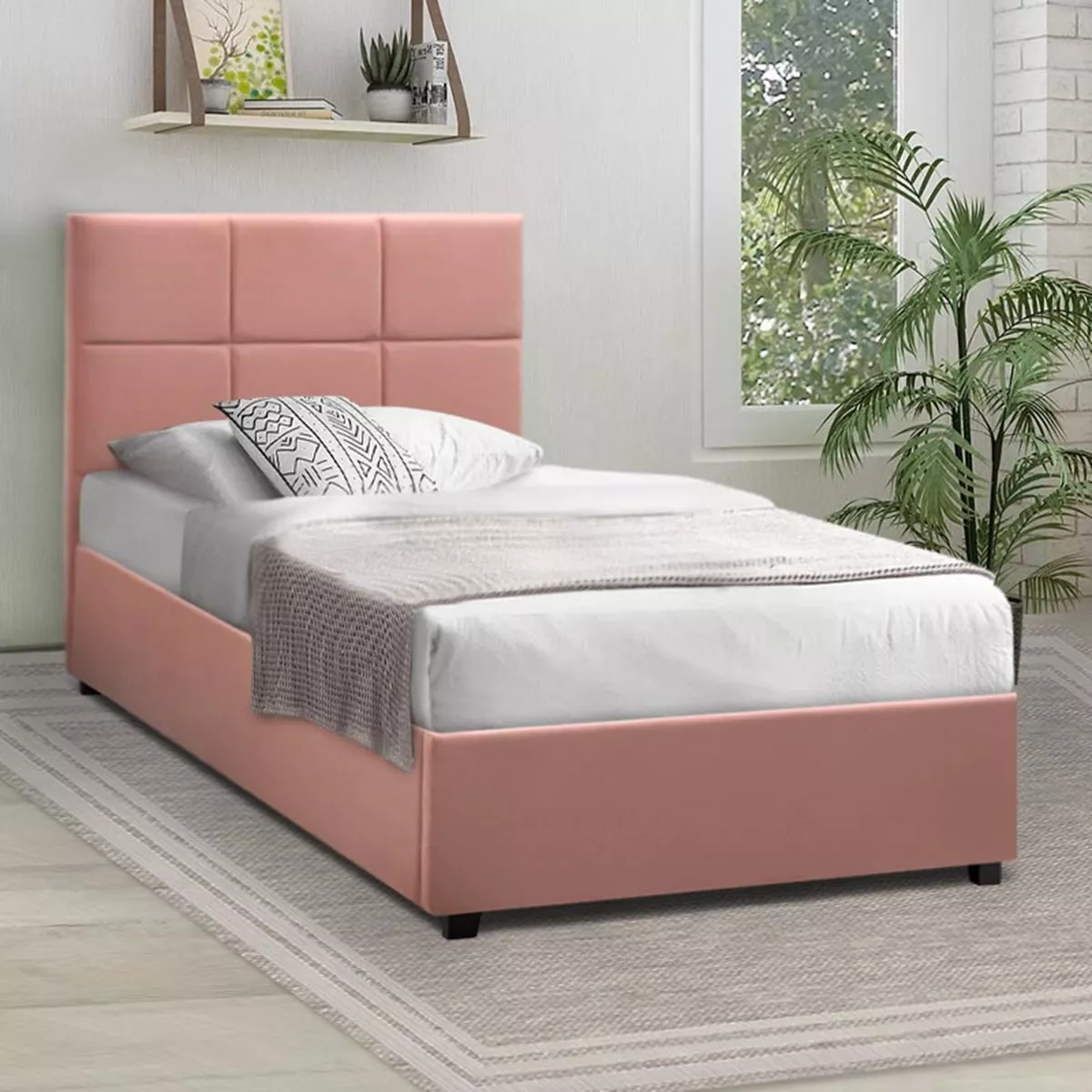 Κρεβάτι Kingston Megapap βελούδινο με αποθηκευτικό χώρο χρώμα melon pink 100x200εκ.