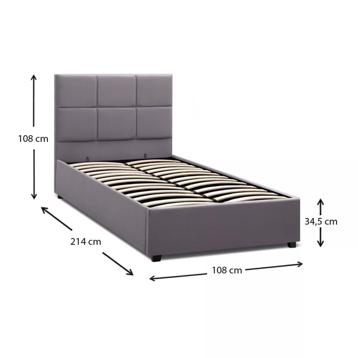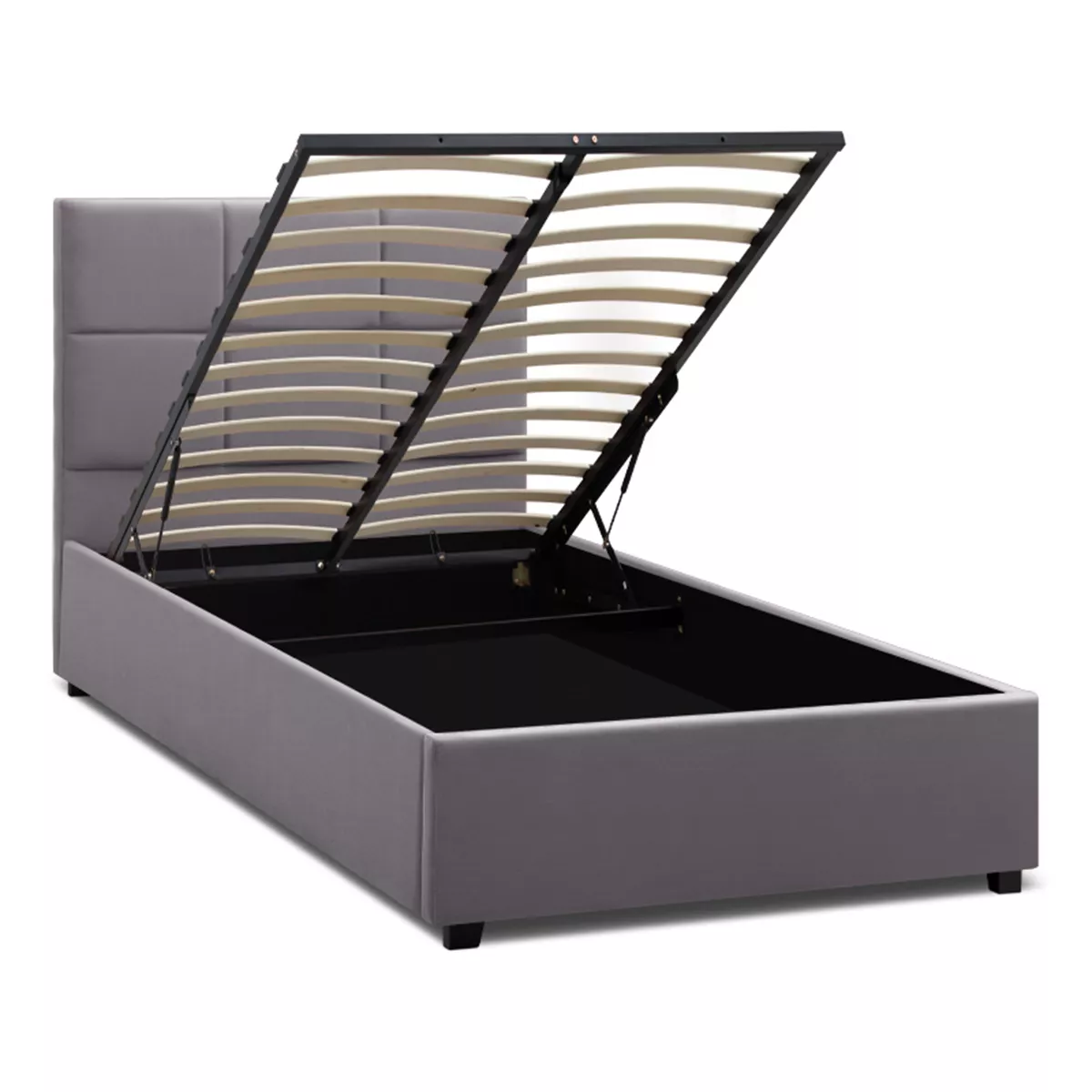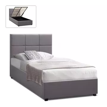 Κρεβάτι Kingston Megapap βελούδινο με αποθηκευτικό χώρο χρώμα γκρι 100x200εκ.