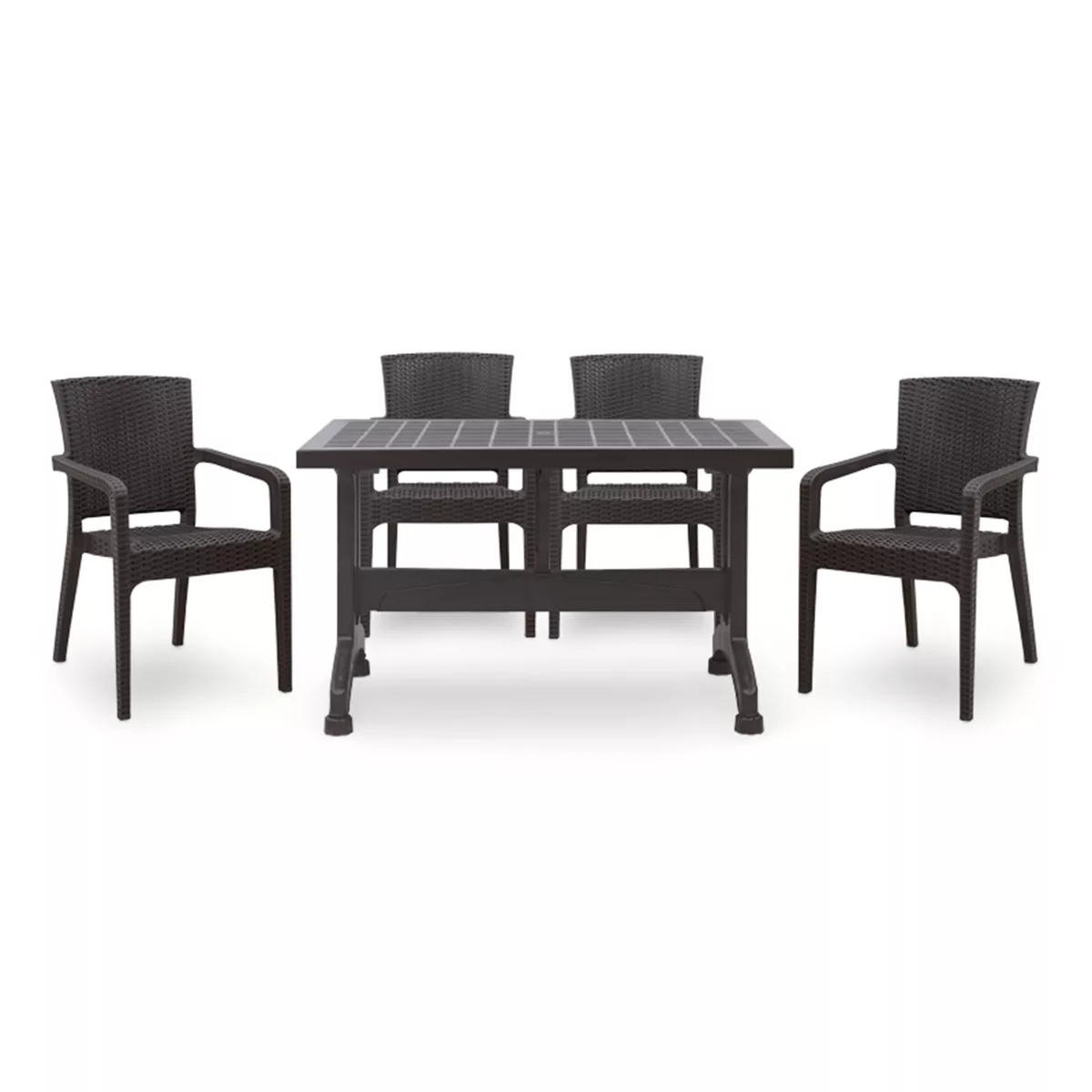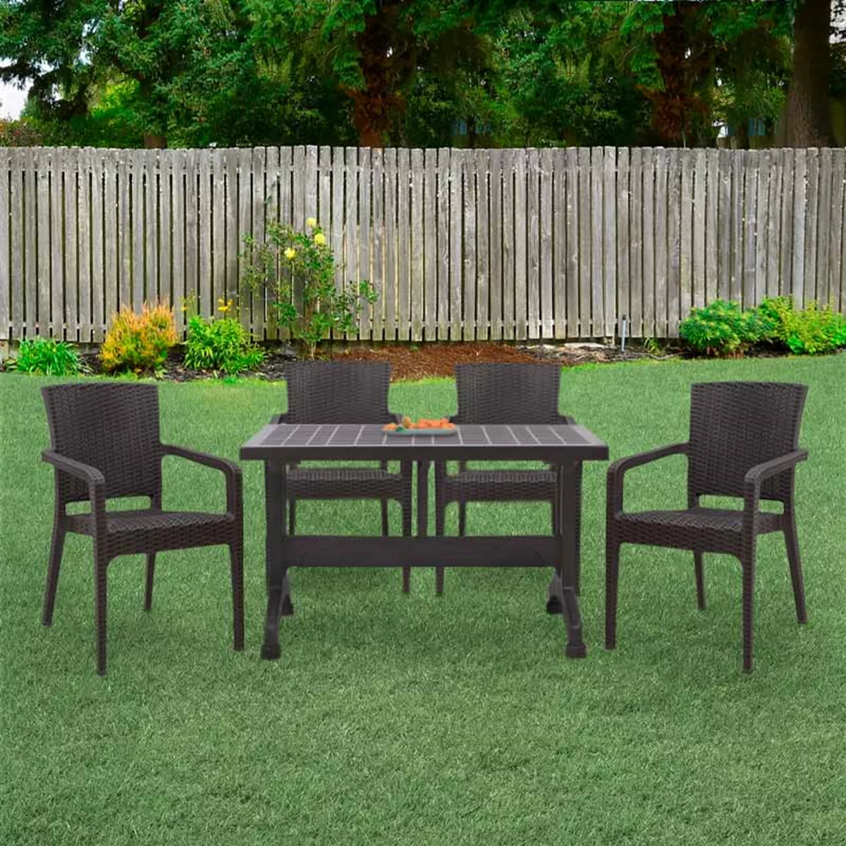 Σετ τραπεζαρία κήπου Callan Megapap 5τμχ πολυπροπυλενίου τραπέζι 140x80 - πολυθρόνα recycled χρώμα καφέ S_GP046-0003,1+GP046-0001,2x4