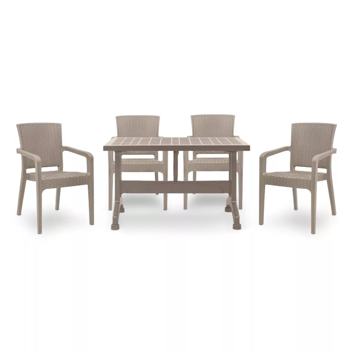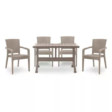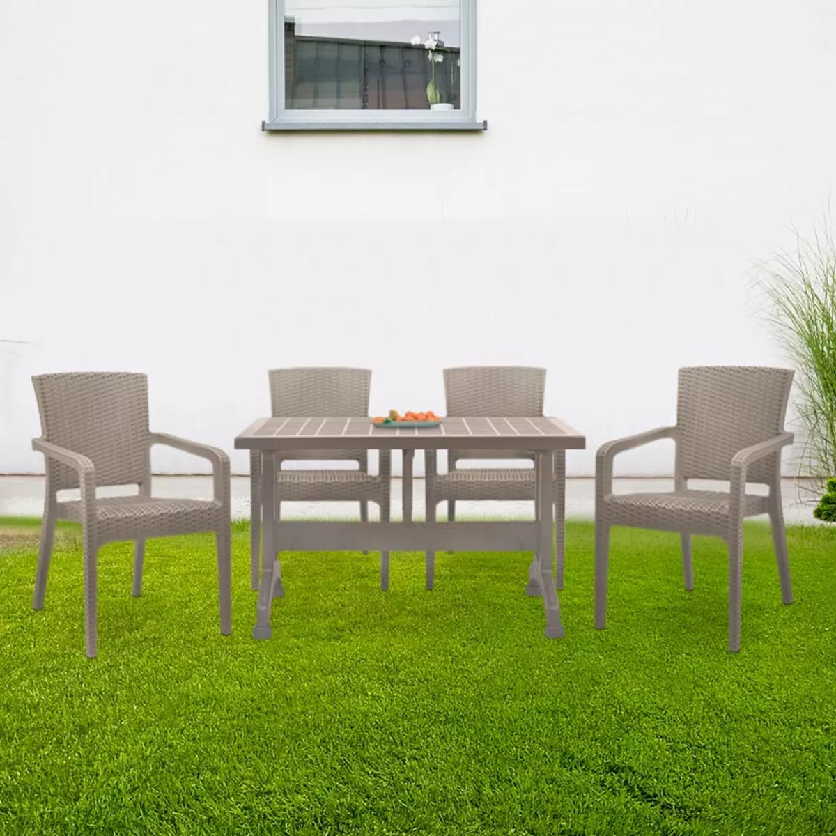 Σετ τραπεζαρία κήπου Callan Megapap 5τμχ πολυπροπυλενίου τραπέζι 120x70 - πολυθρόνα recycled χρώμα cappuccino S_GP046-0002,2+GP046-0001,3x4