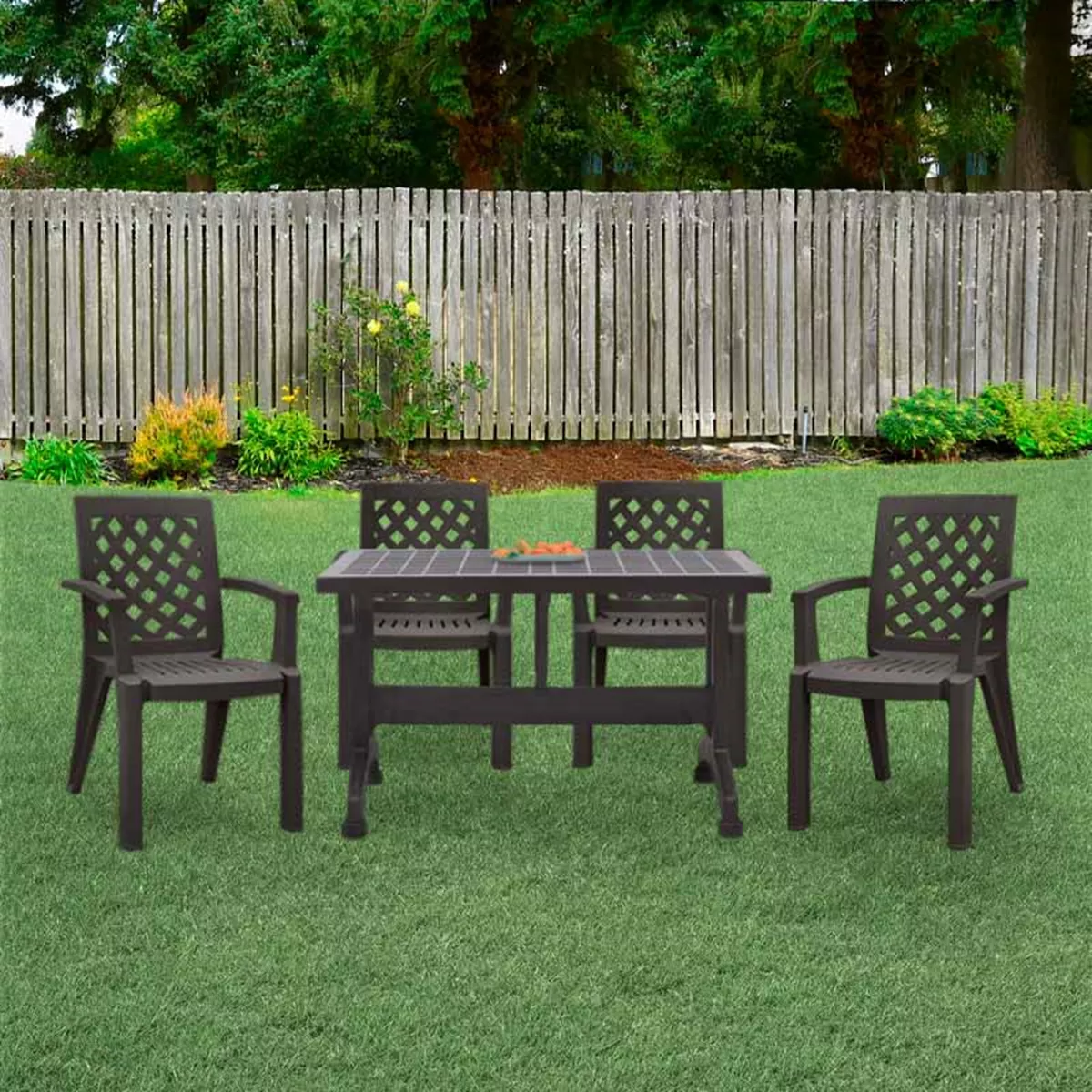 Σετ τραπεζαρία κήπου Callan Megapap 5τμχ πολυπροπυλενίου τραπέζι 120x70 - πολυθρόνα χρώμα καφέ S_GP046-0002,1+GP046-0004,3x4