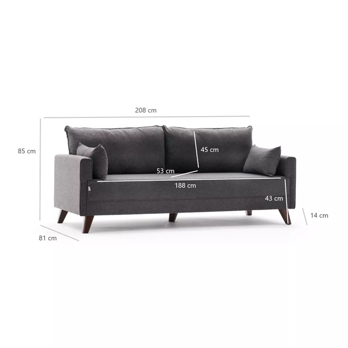Καναπές Bella Megapap τριθέσιος υφασμάτινος χρώμα ανθρακί 208x81x85εκ.