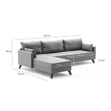 Γωνιακός καναπές Bella Megapap αριστερή γωνία υφασμάτινος χρώμα καφέ 275x165x85εκ.