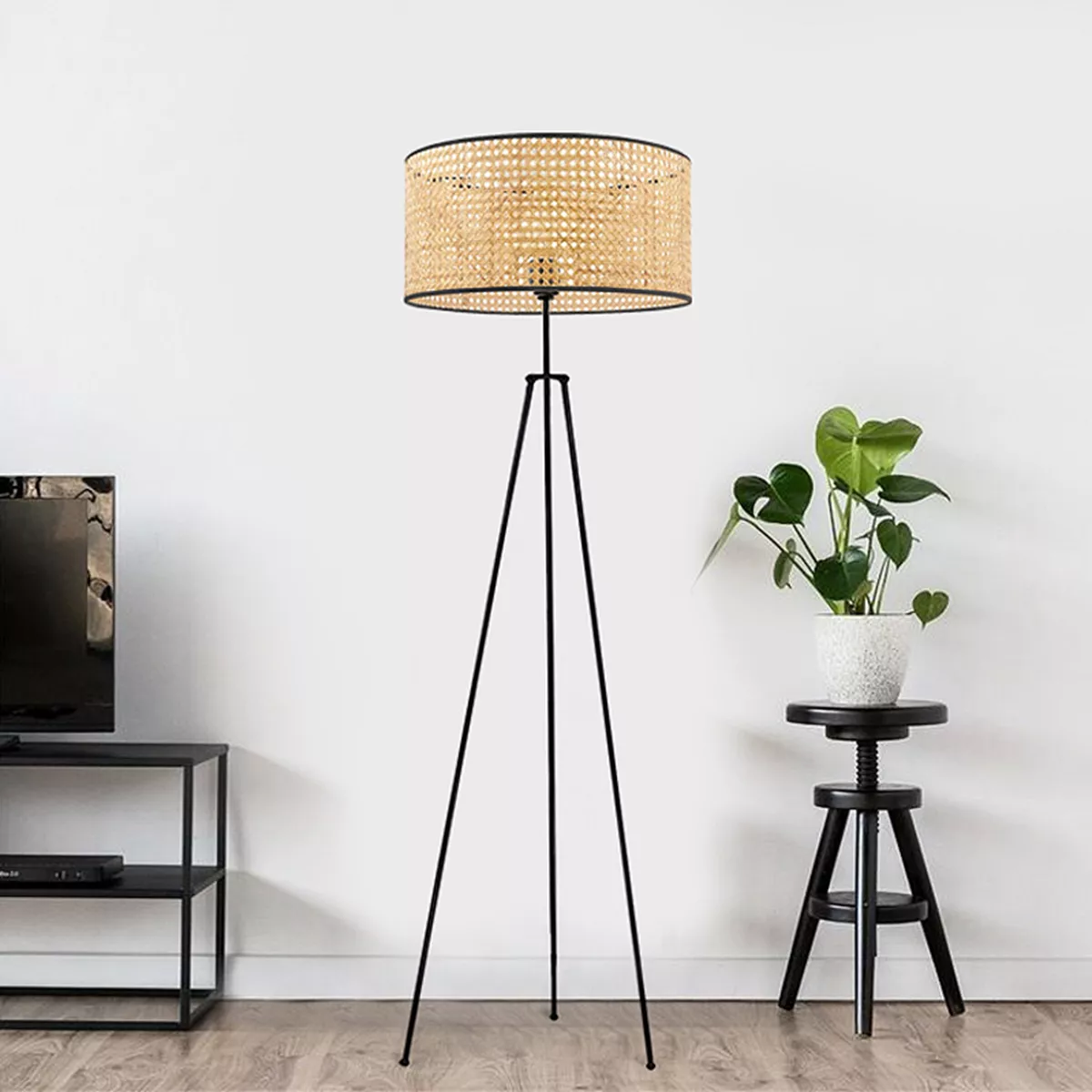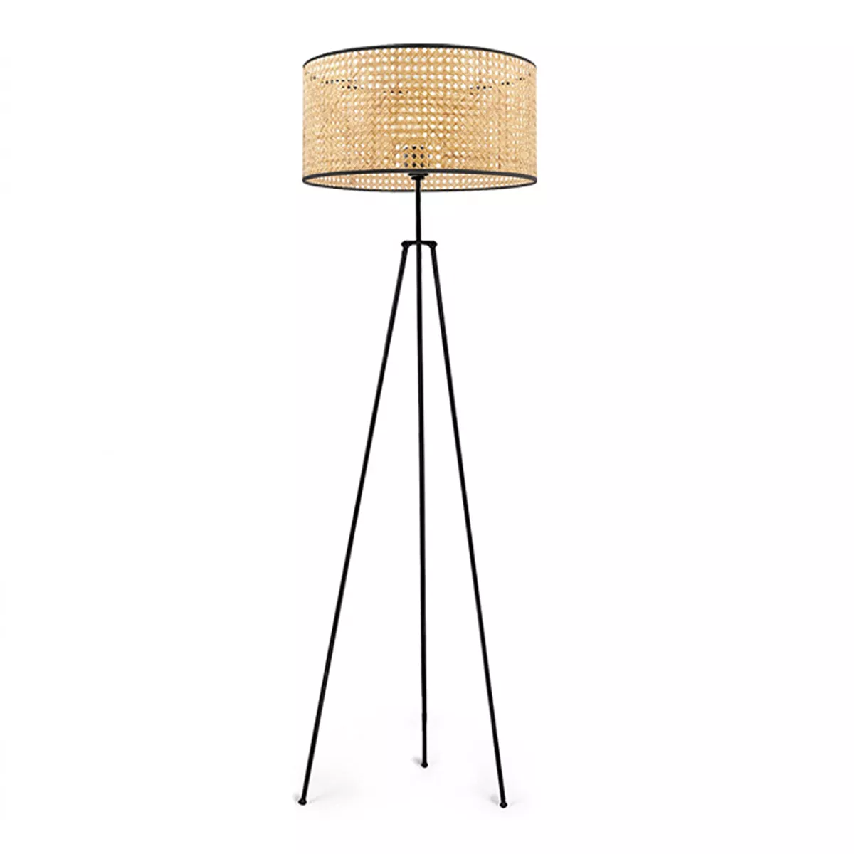 Φωτιστικό δαπέδου Idaho Megapap E27 μεταλλικό - ρατάν χρώμα μαύρο - φυσικό Φ38x150εκ.