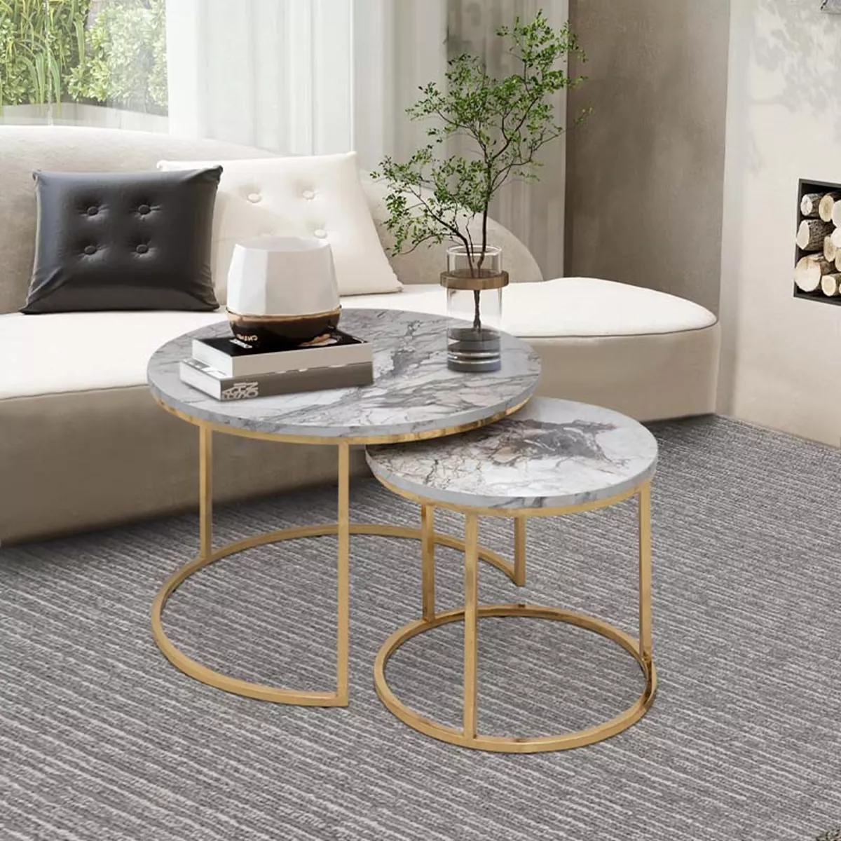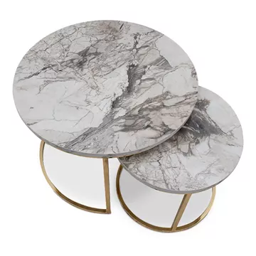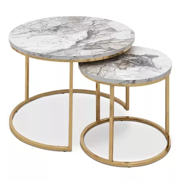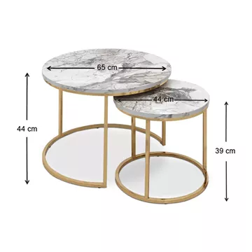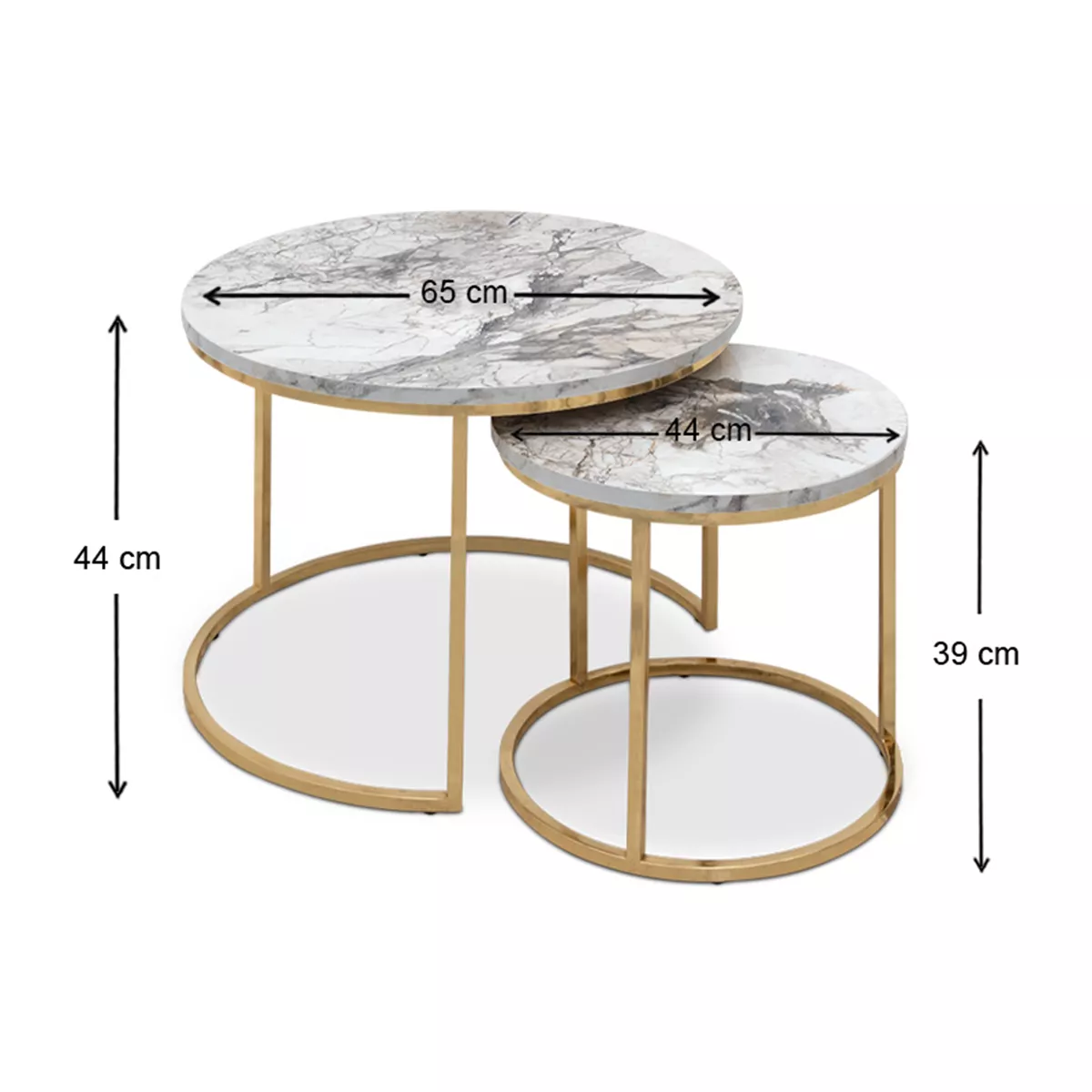 Τραπεζάκια σαλονιού Gary Megapap Mdf - μεταλλικό χρώμα μπεζ εφέ μαρμάρου - χρυσό 65x65x44εκ.