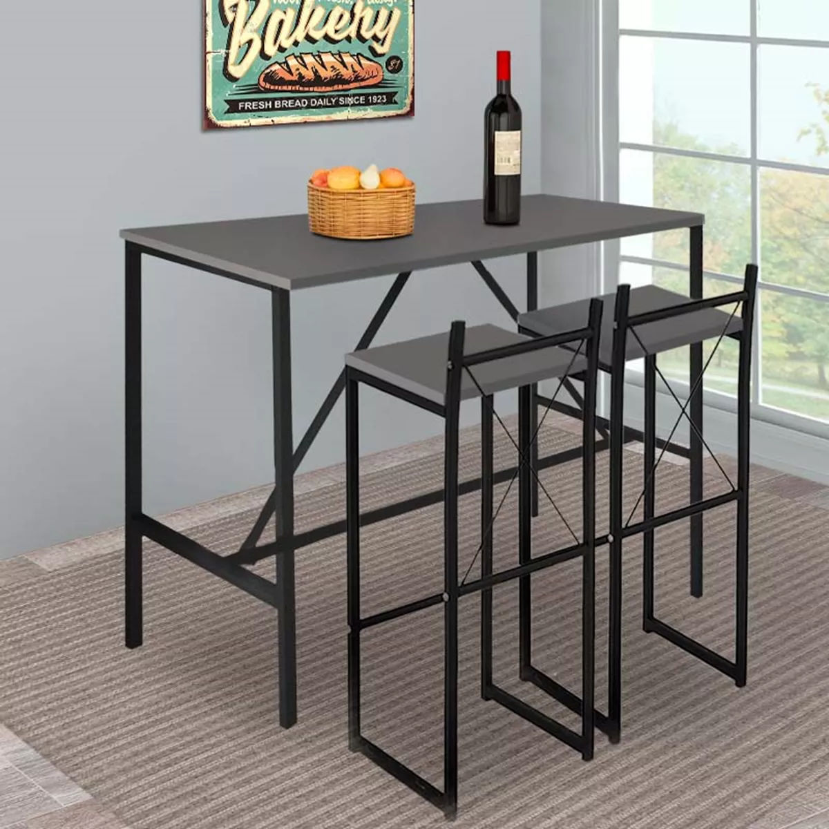 Τραπέζι μπαρ - stand Crego Megapap μεταλλικό - μελαμίνης χρώμα ανθρακί - μαύρο 100x45x89εκ.