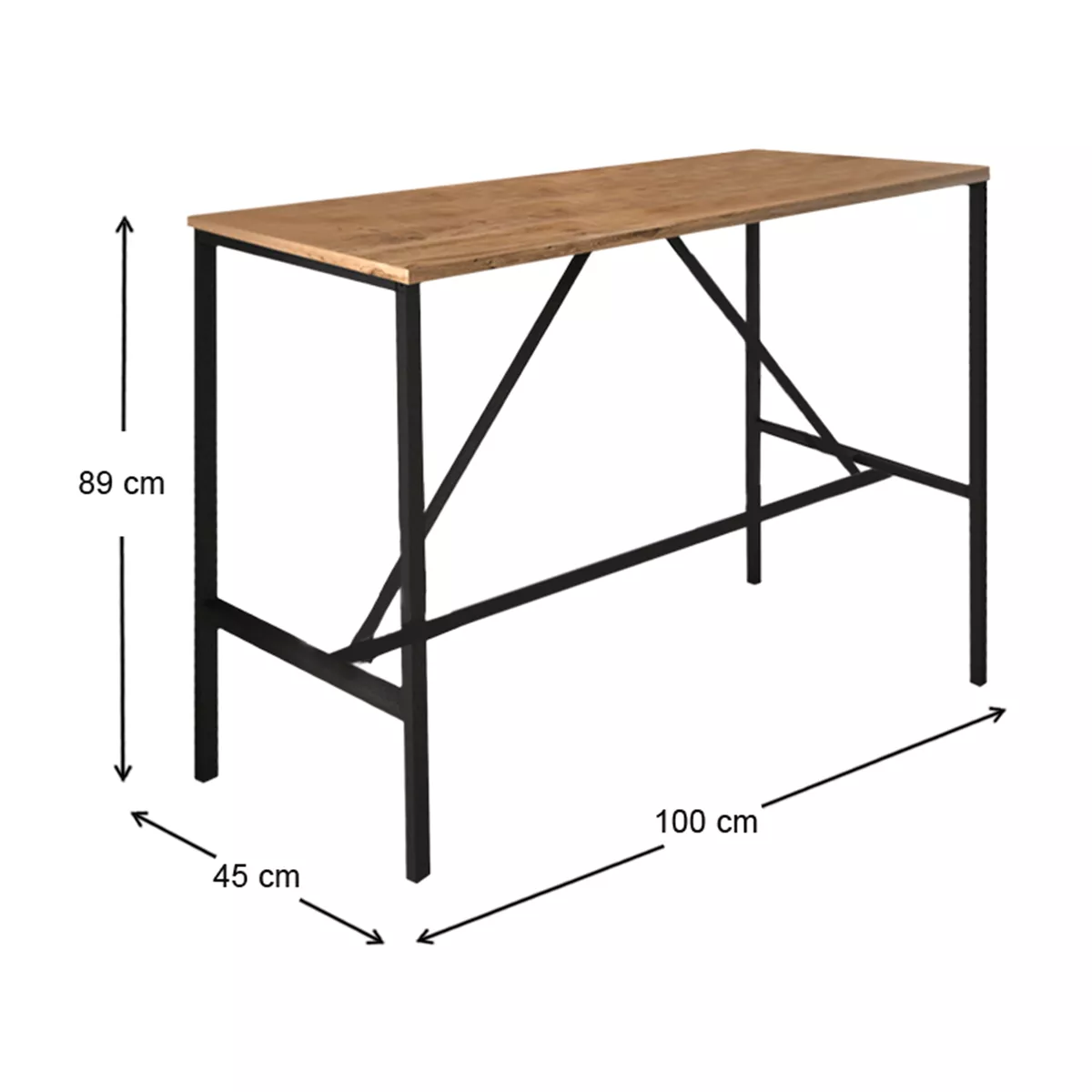 Τραπέζι μπαρ - stand Crego Megapap μεταλλικό - μελαμίνης χρώμα pine oak - μαύρο 100x45x89εκ.