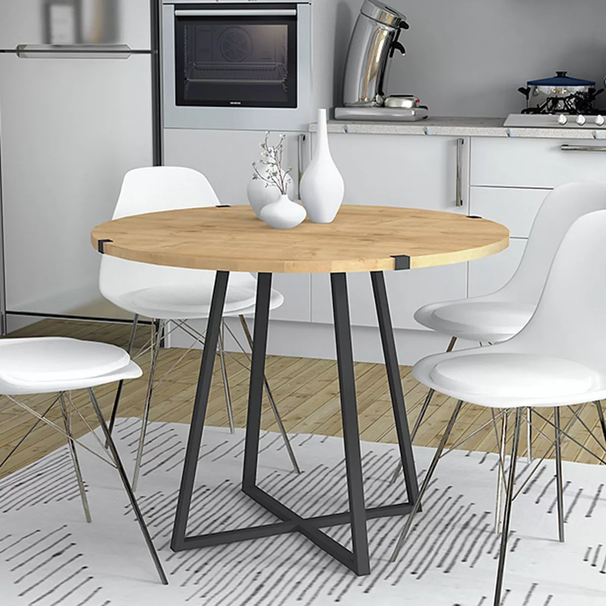 Τραπέζι Rubes Megapap μεταλλικό - μελαμίνης χρώμα sonoma - ανθρακί 120x120x78εκ.