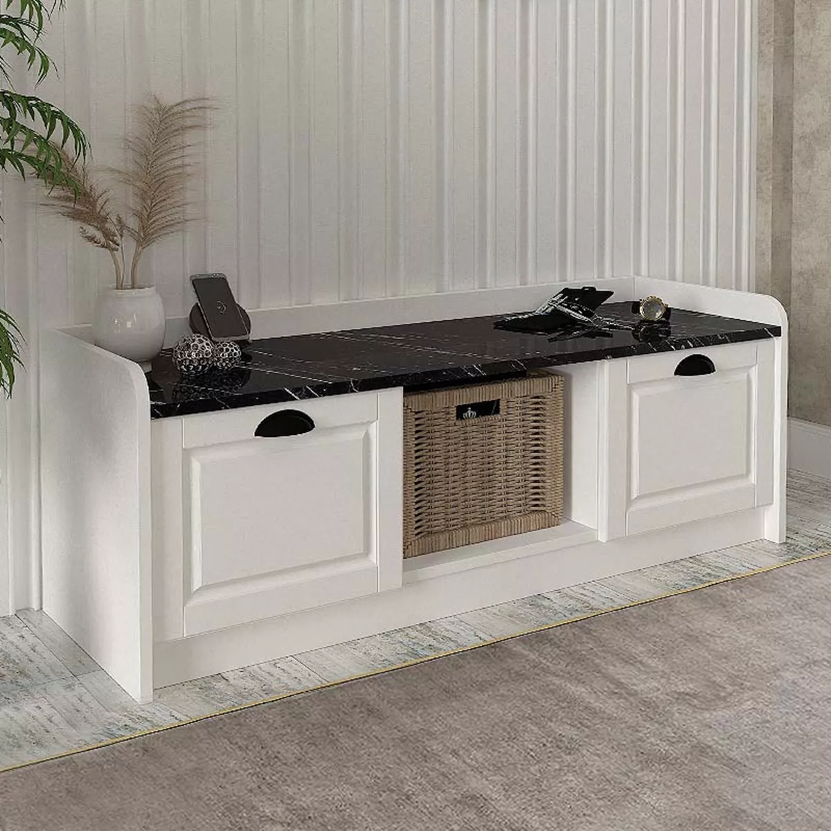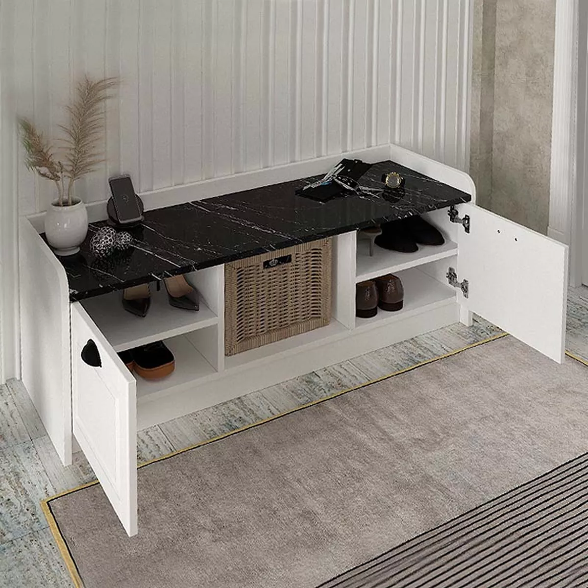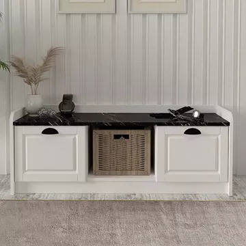 Παπουτσοθήκη μελαμίνης Rayne Megapap χρώμα λευκό - μαύρο εφέ μαρμάρου 120x40x45εκ.