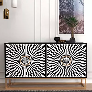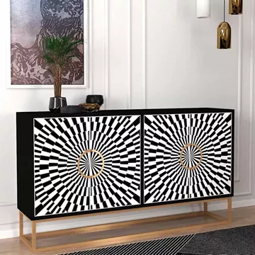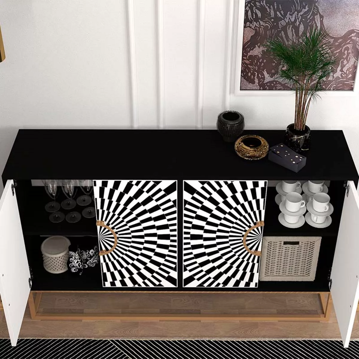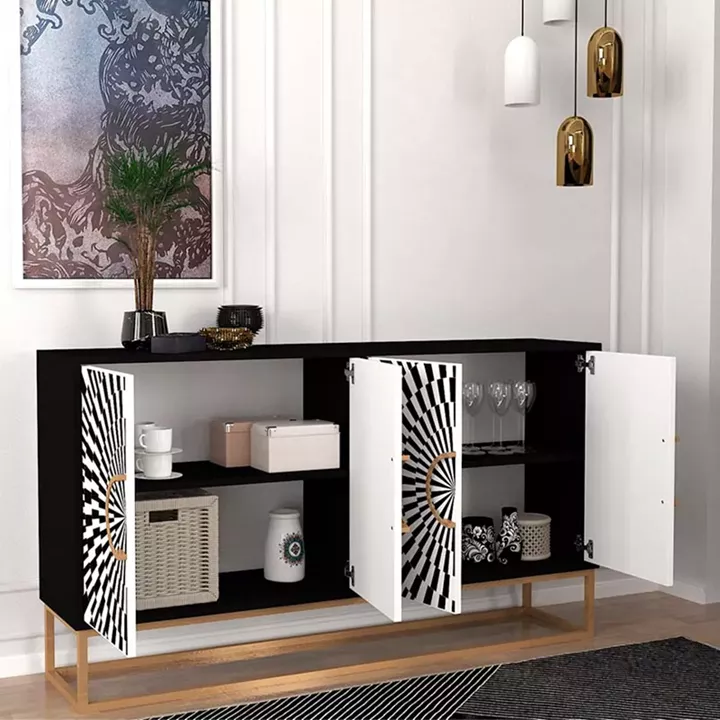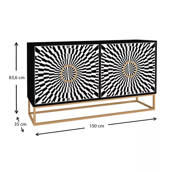 Μπουφές μελαμίνης Gradel Megapap χρώμα μαύρο - ασπρόμαυρο 150x35x83,6εκ.
