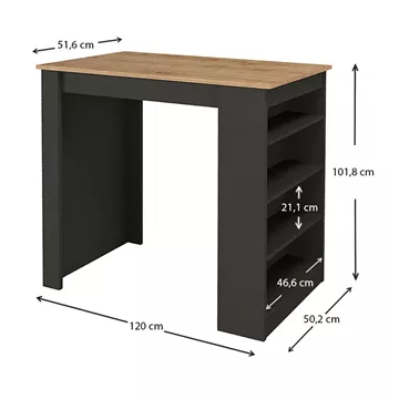 Τραπέζι μπαρ Monaco Megapap από μελαμίνη χρώμα ανθρακί - sapphire oak 120x51,6x101,8εκ.