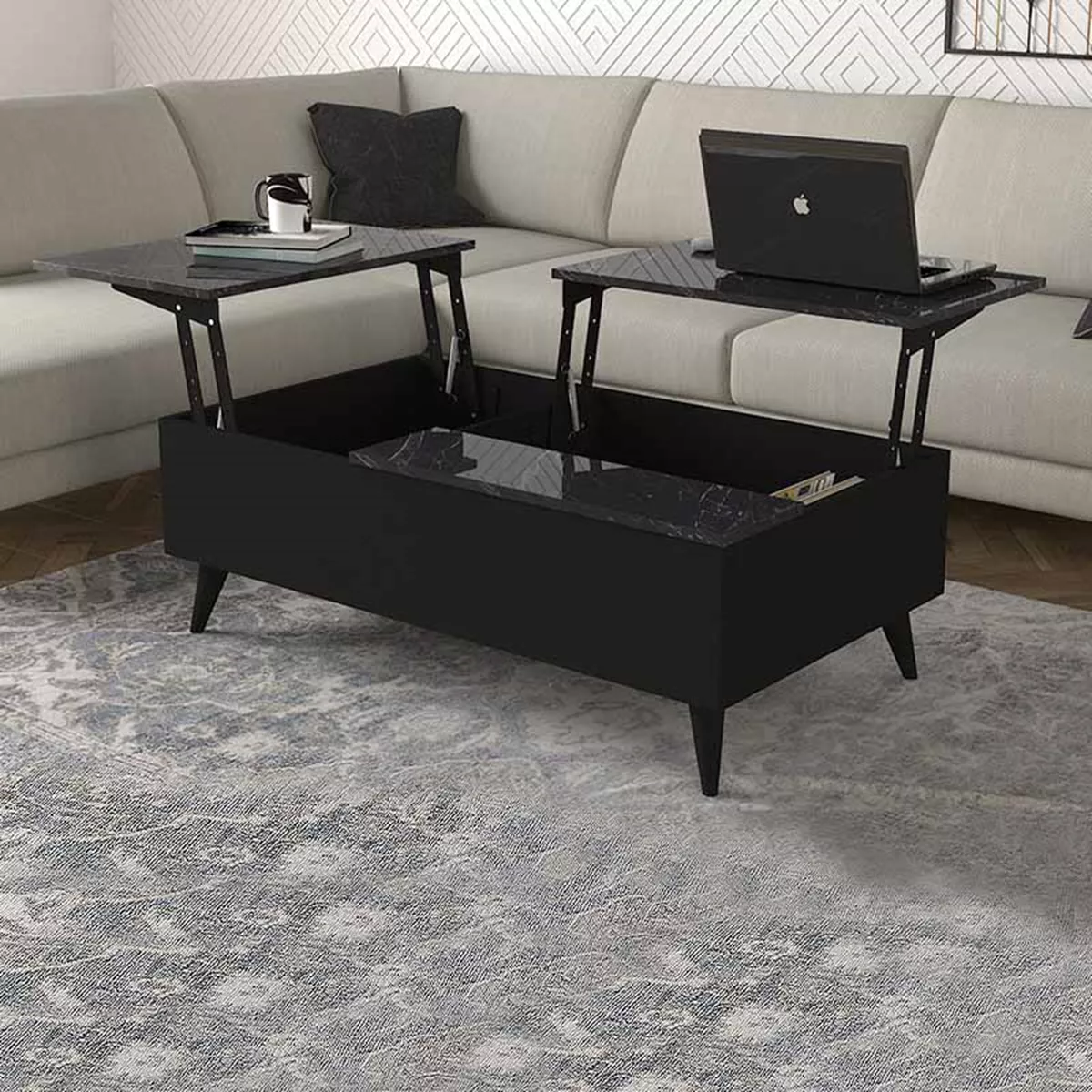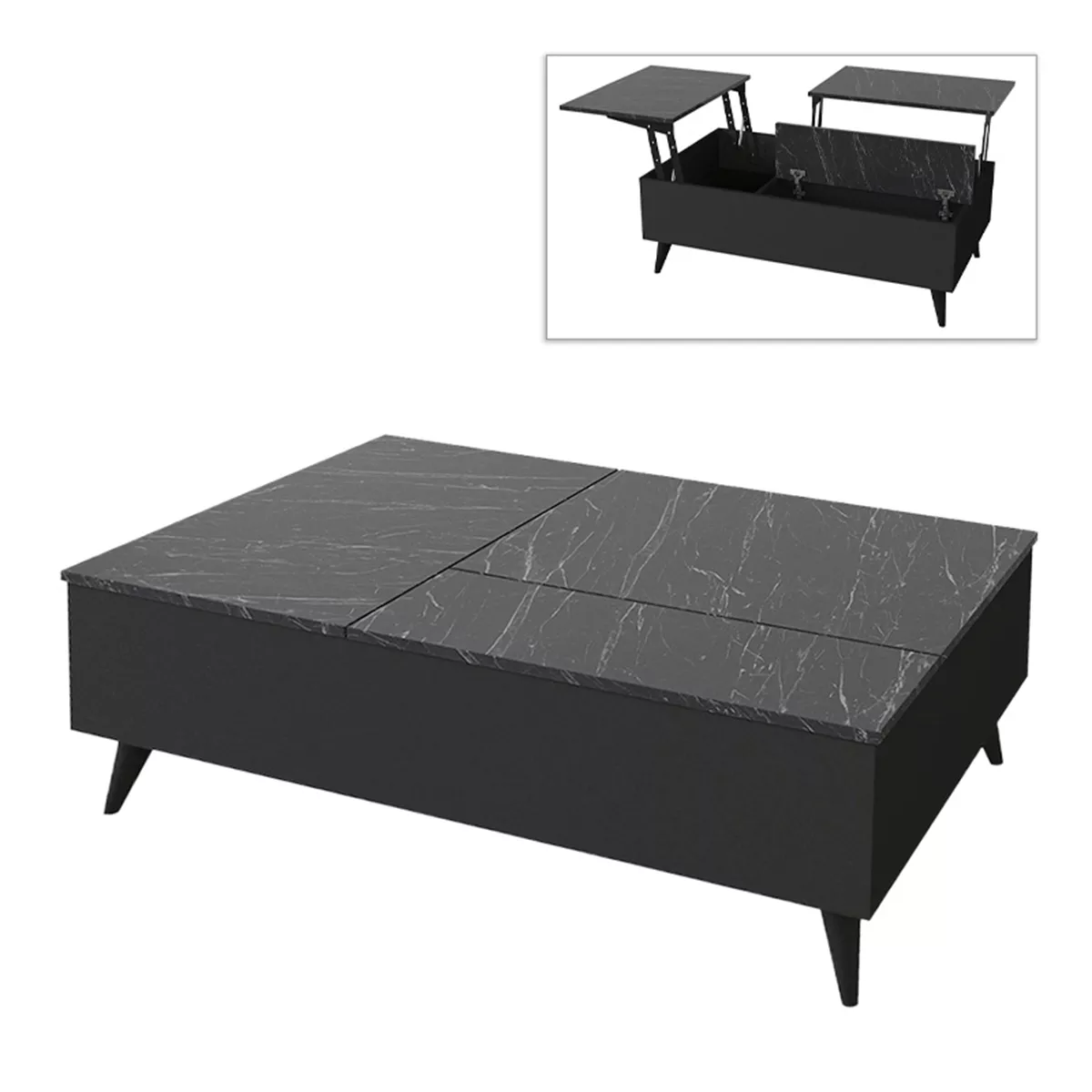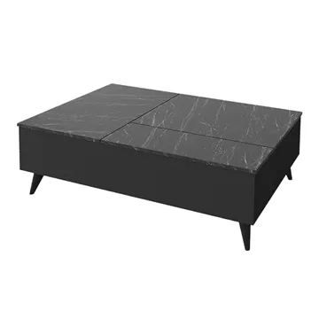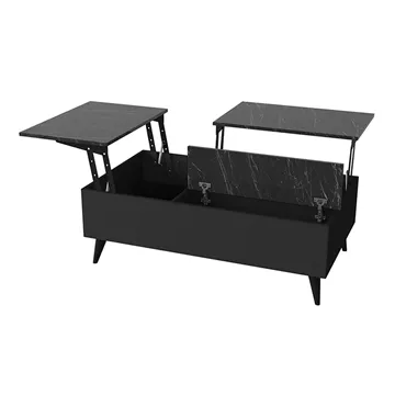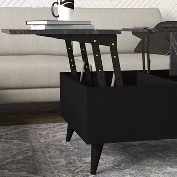 Τραπεζάκι σαλονιού Roy Megapap με σερβιτόρο από μελαμίνη χρώμα μαύρο - εφέ μαρμάρου 121x69x40εκ.