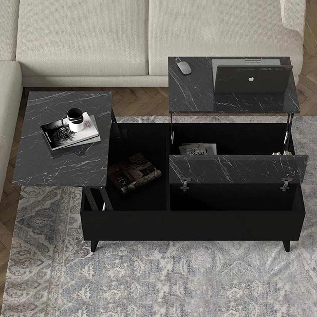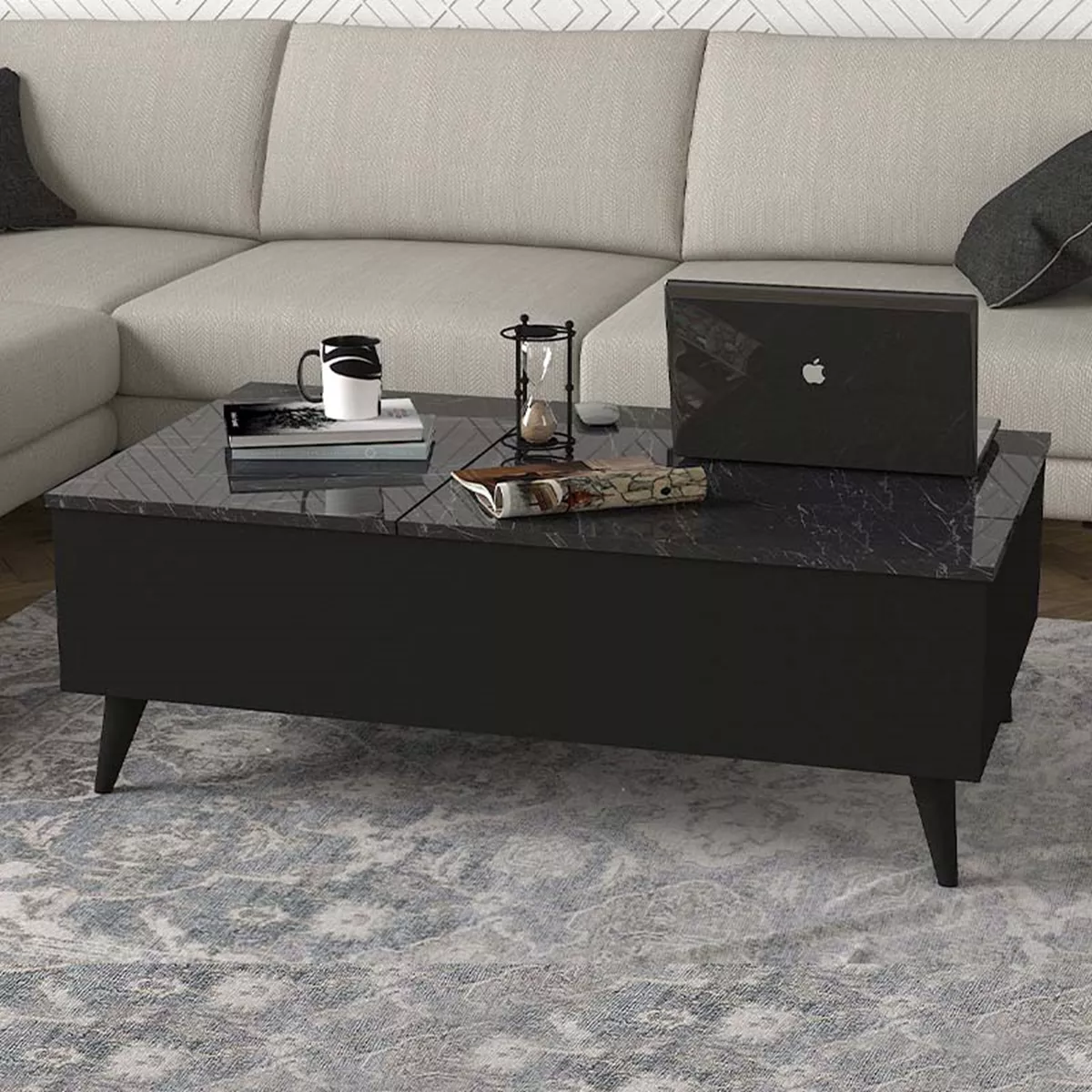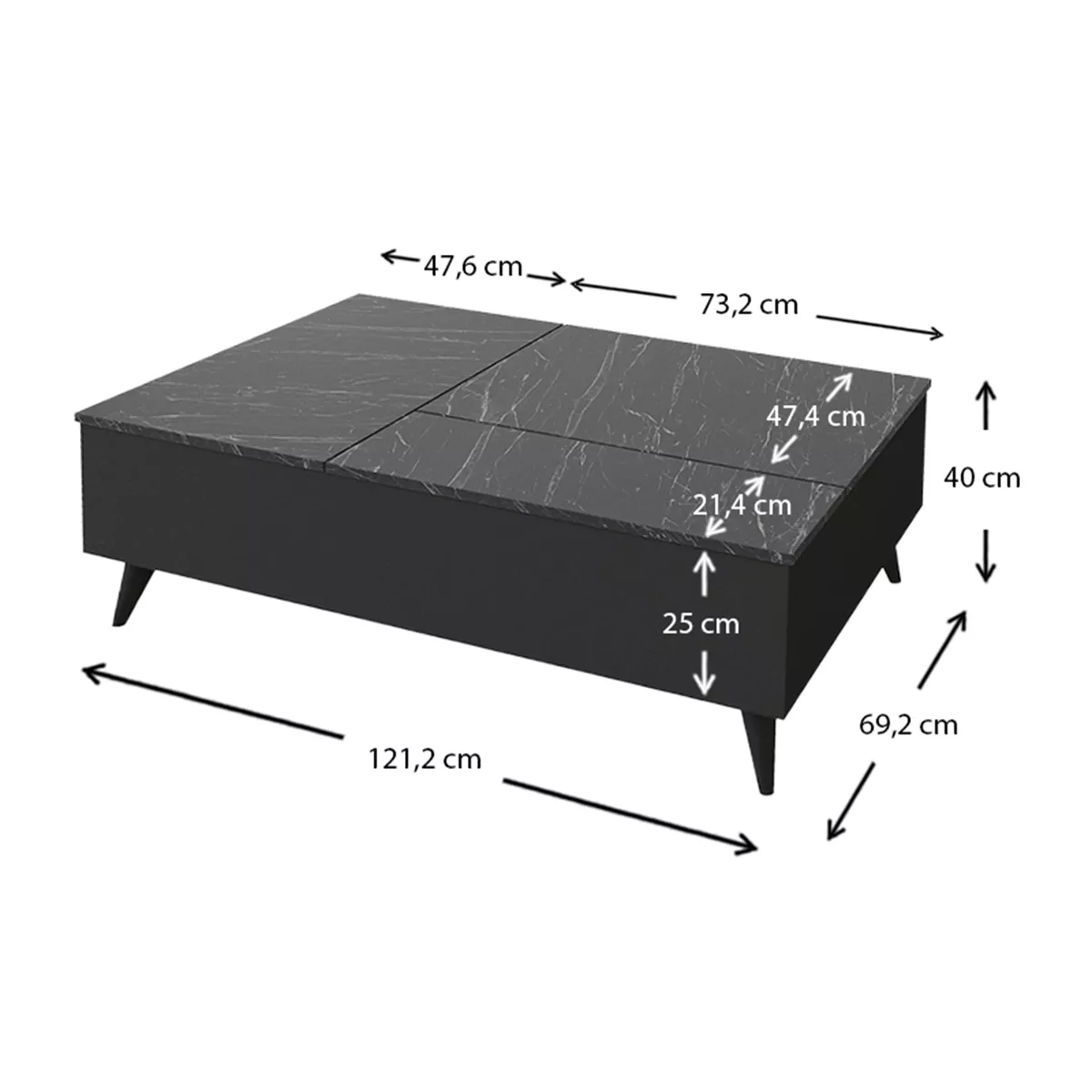 Τραπεζάκι σαλονιού Roy Megapap με σερβιτόρο από μελαμίνη χρώμα μαύρο - εφέ μαρμάρου 121x69x40εκ.