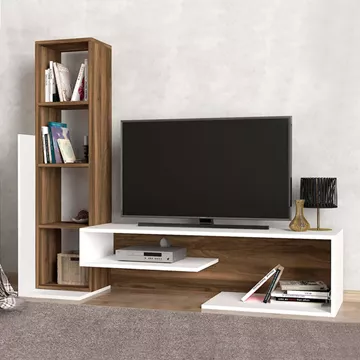Σύνθεση τηλεόρασης Bend Megapap από μελαμίνη χρώμα λευκό - καρυδί 153,6x39x131εκ.