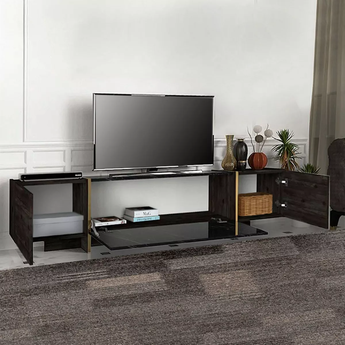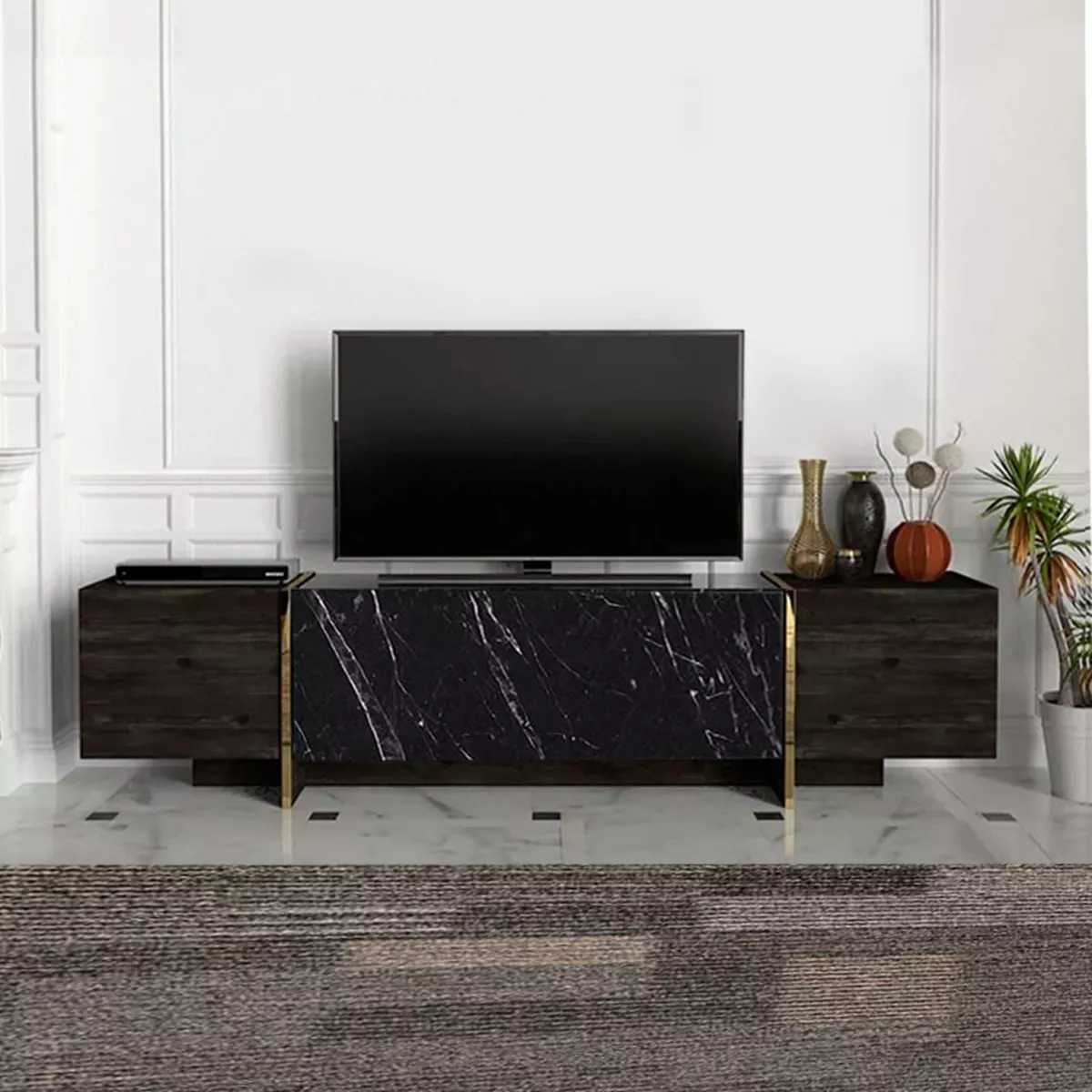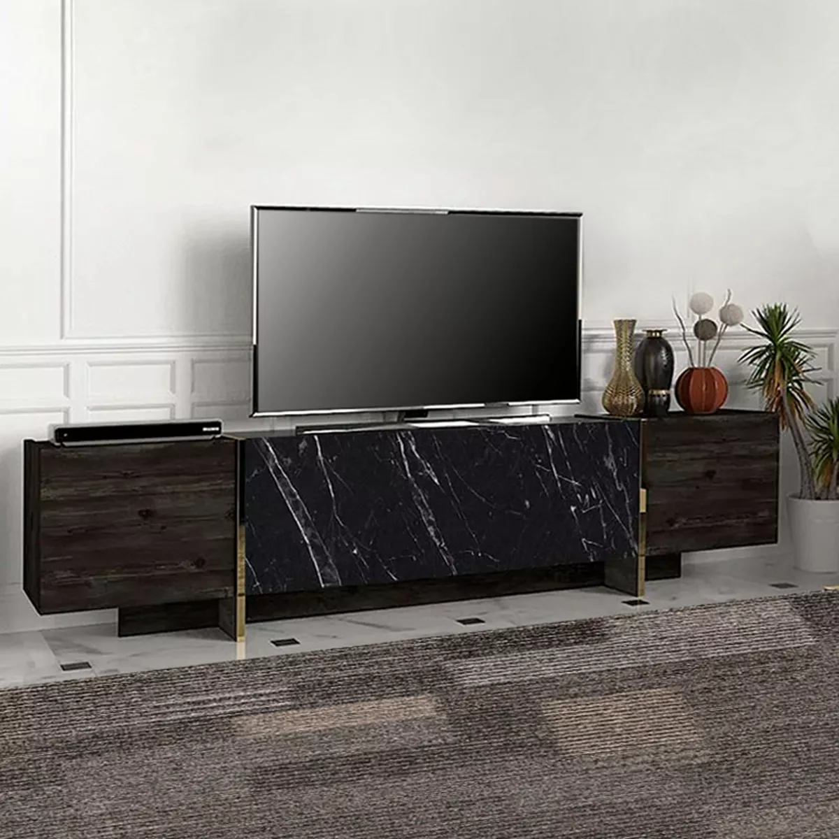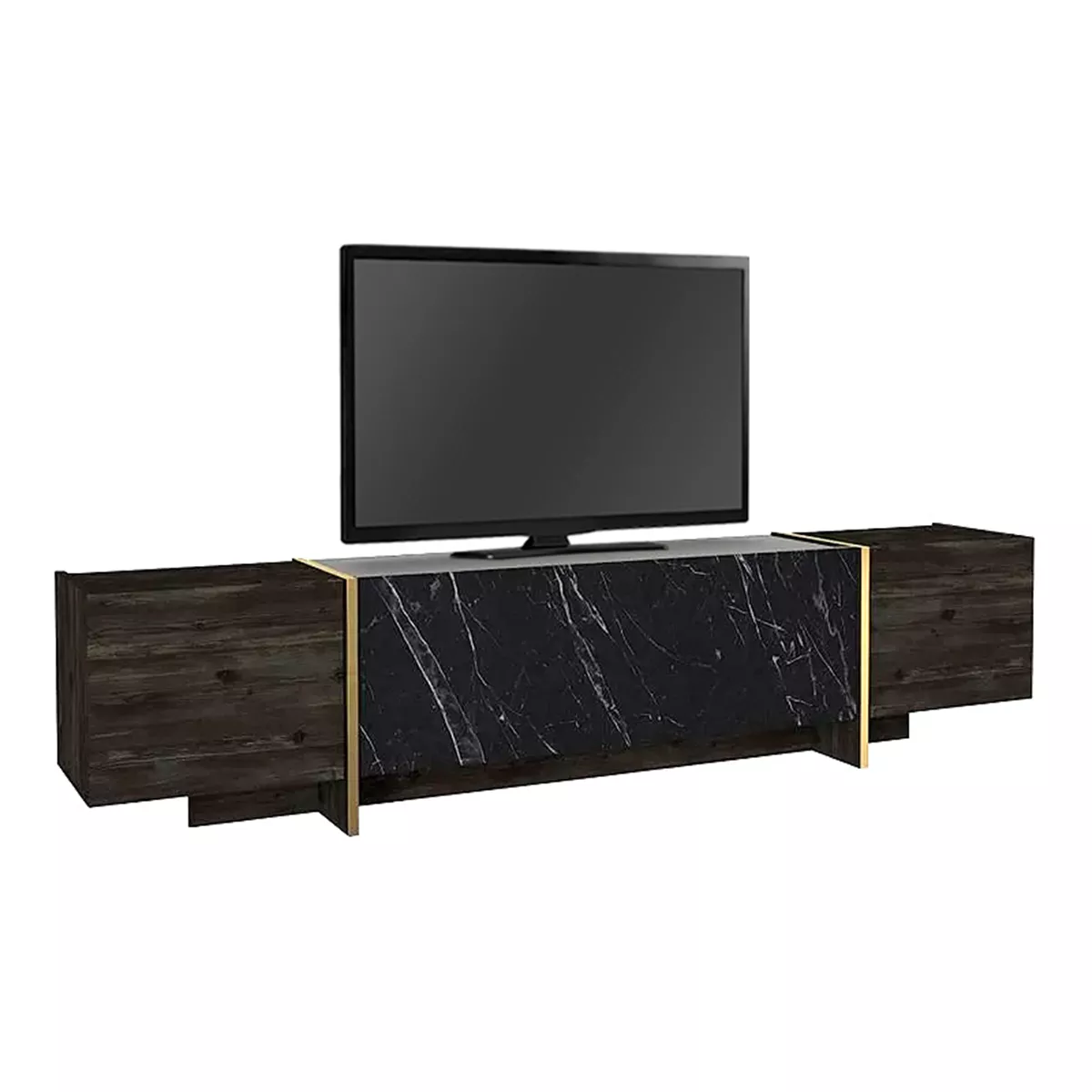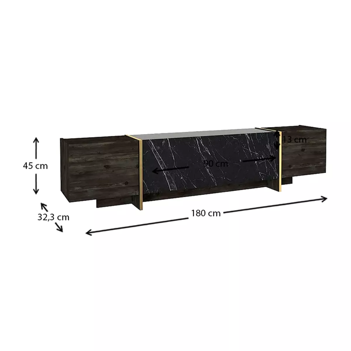Έπιπλο τηλεόρασης Veyron Megapap από μελαμίνη χρώμα μαύρο rebab - μαύρο εφέ μαρμάρου 180x32,3x45εκ.