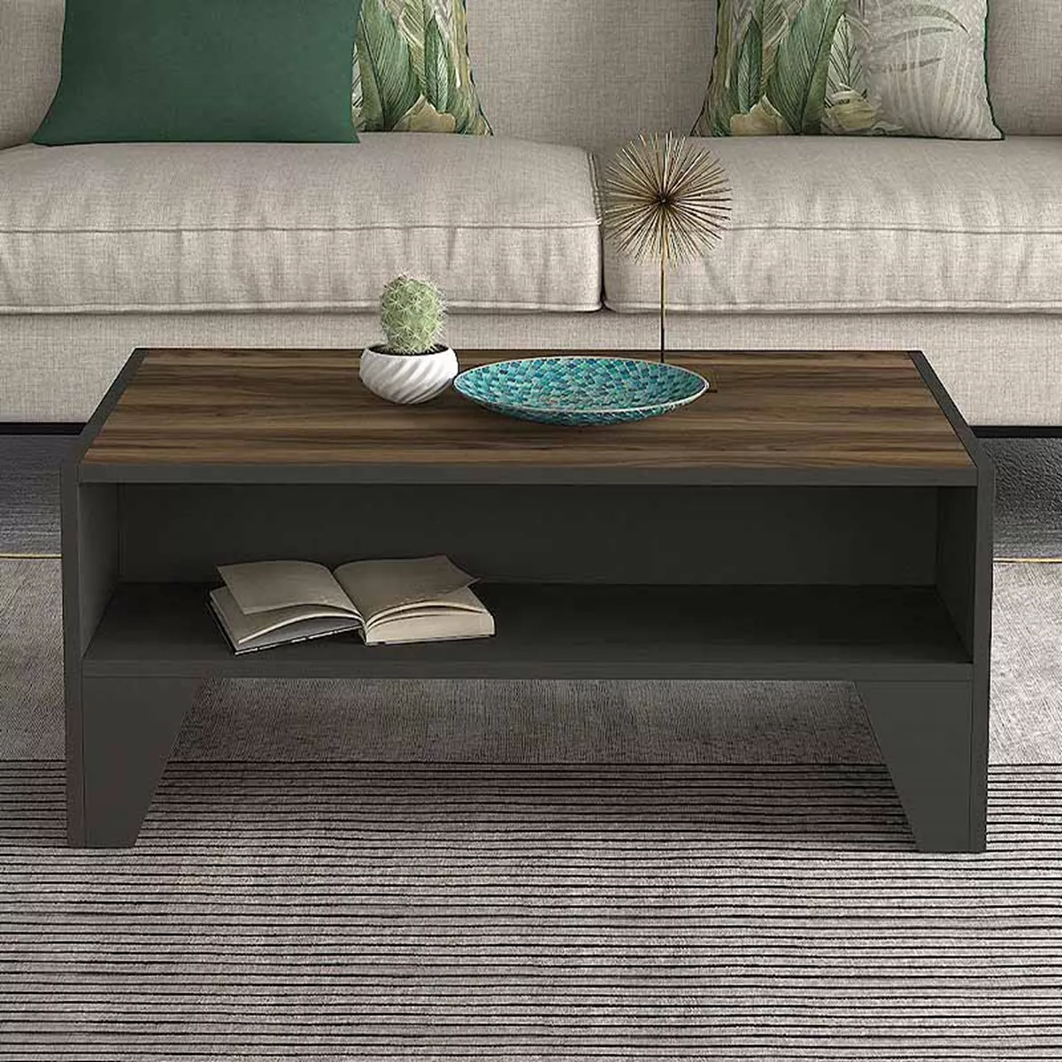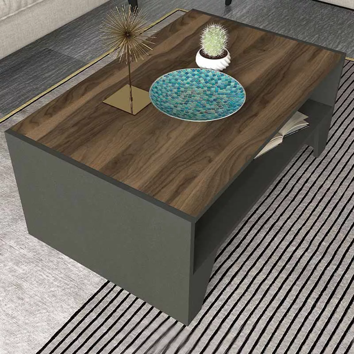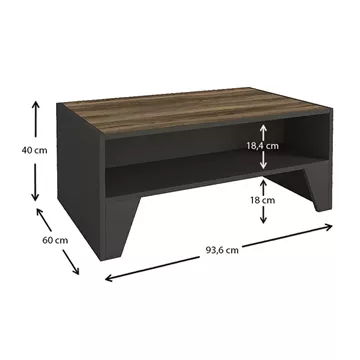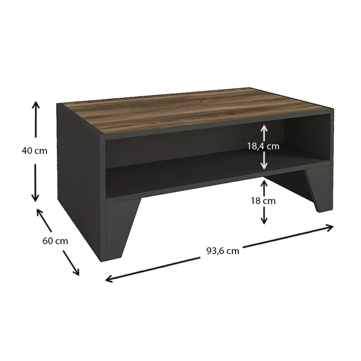 Τραπεζάκι σαλονιού Chester Megapap από μελαμίνη χρώμα ανθρακί - καρυδί 93,6x60x40εκ.