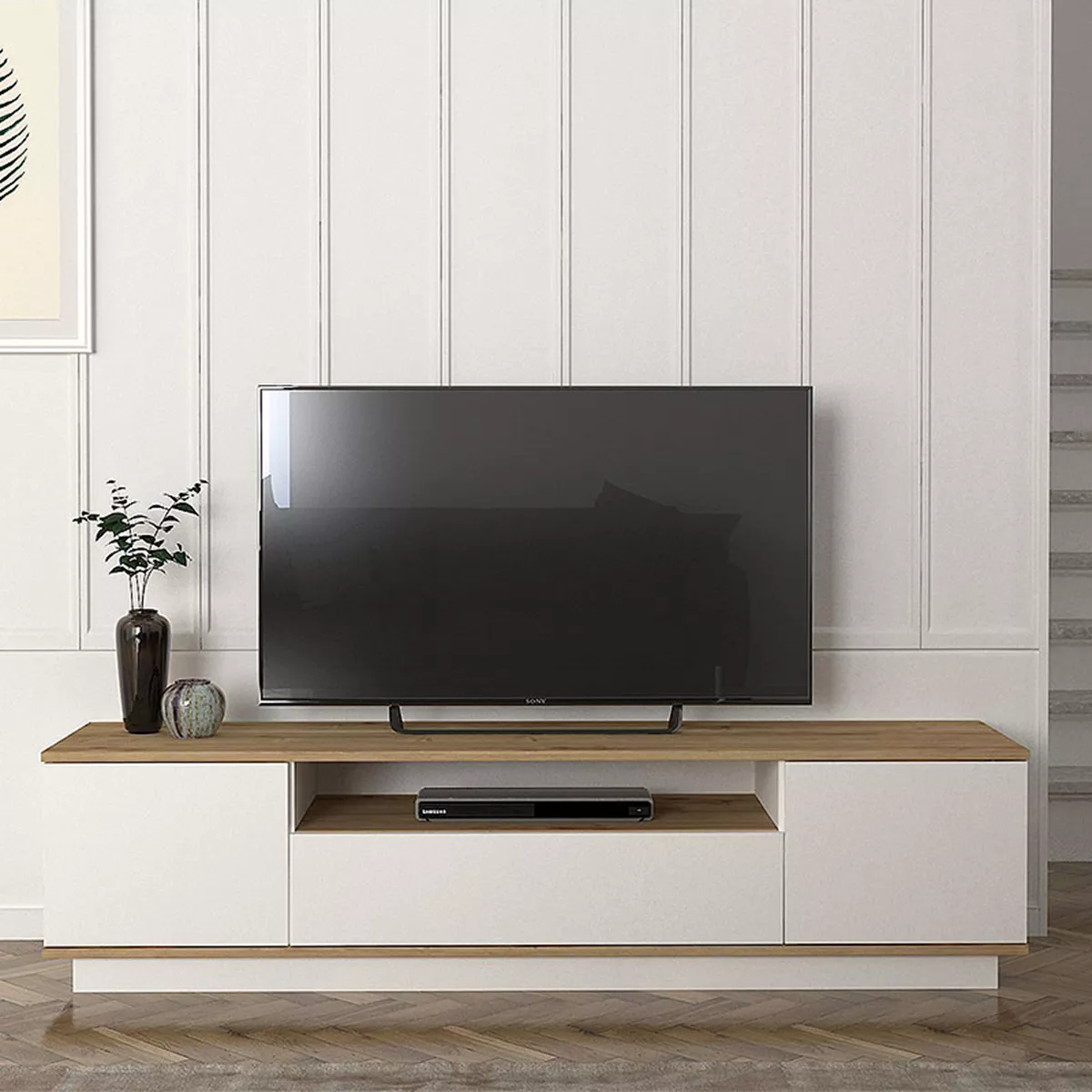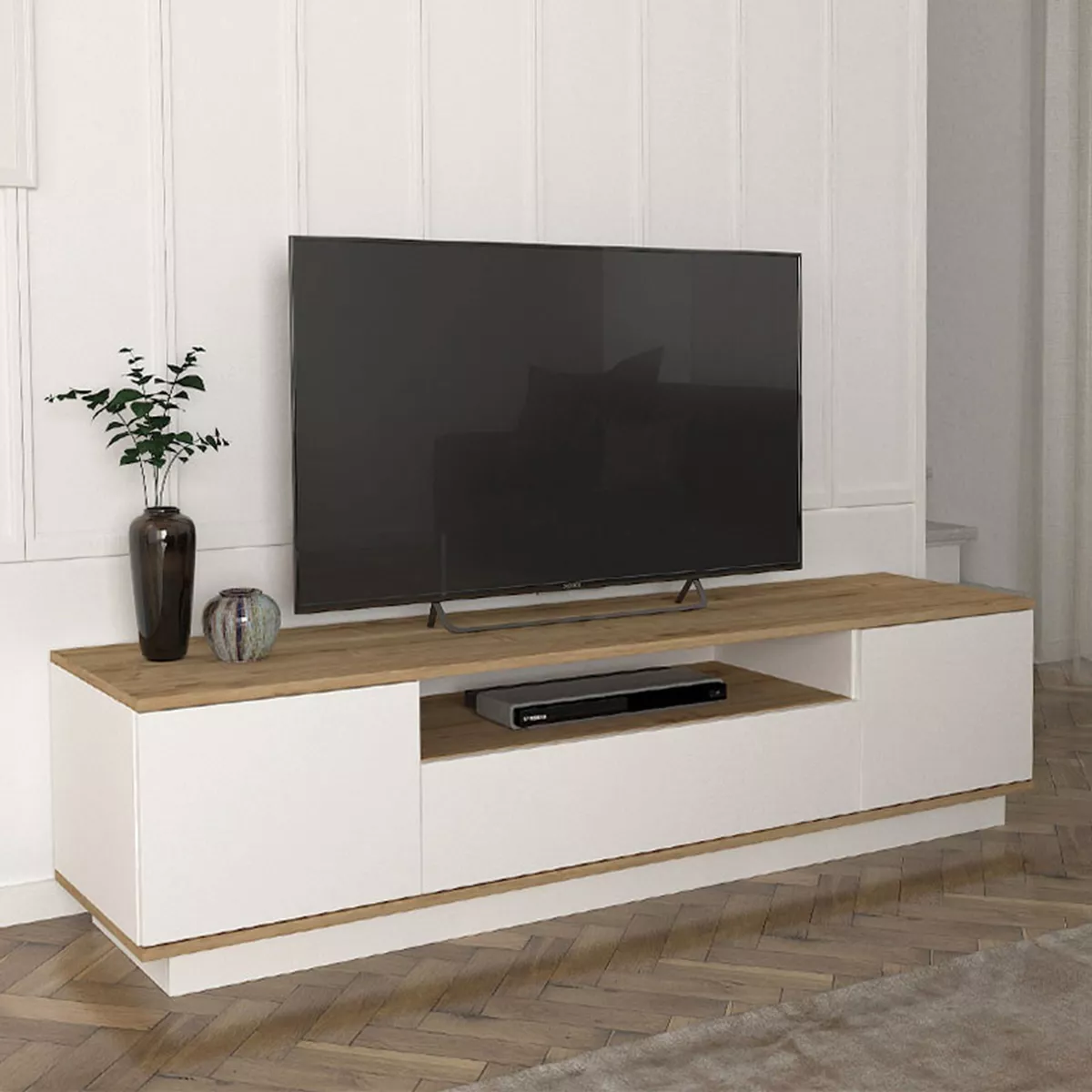 Έπιπλο τηλεόρασης Fedya Megapap από μελαμίνη χρώμα λευκό - sapphire oak 180x45x44,6εκ.