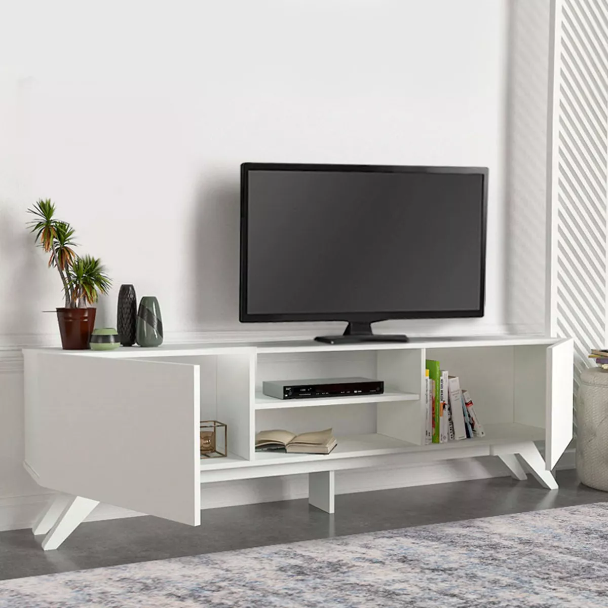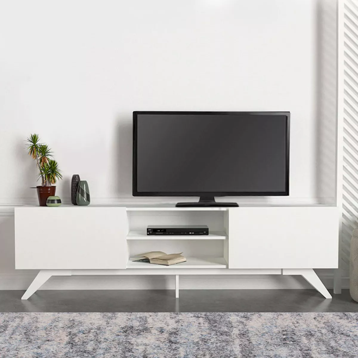 Έπιπλο τηλεόρασης Jarvis Megapap από μελαμίνη χρώμα λευκό 180x31,3x58εκ.