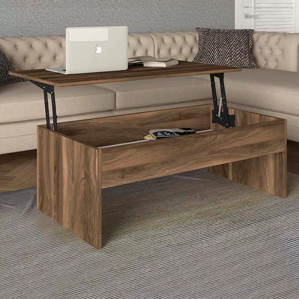 Τραπεζάκι σαλονιού Devon Megapap με σερβιτόρο από μελαμίνη χρώμα καρυδί 110x60x44,8εκ.