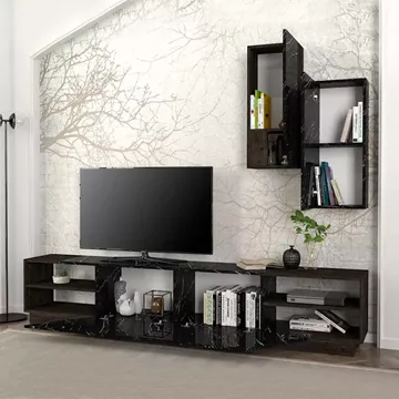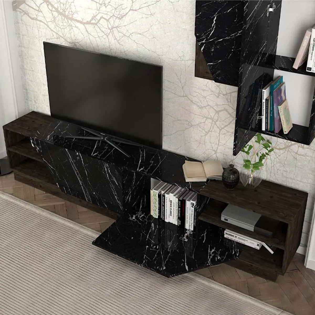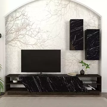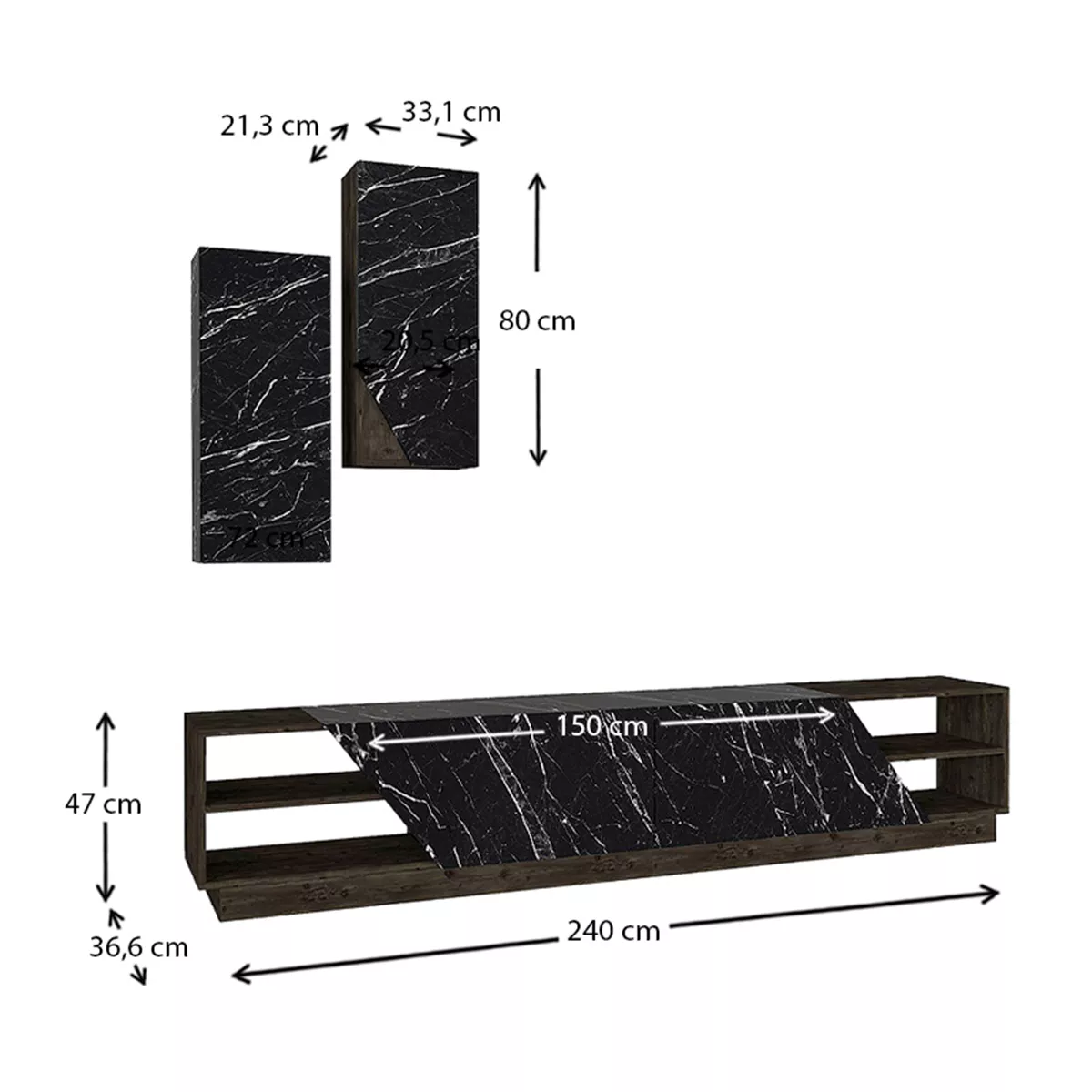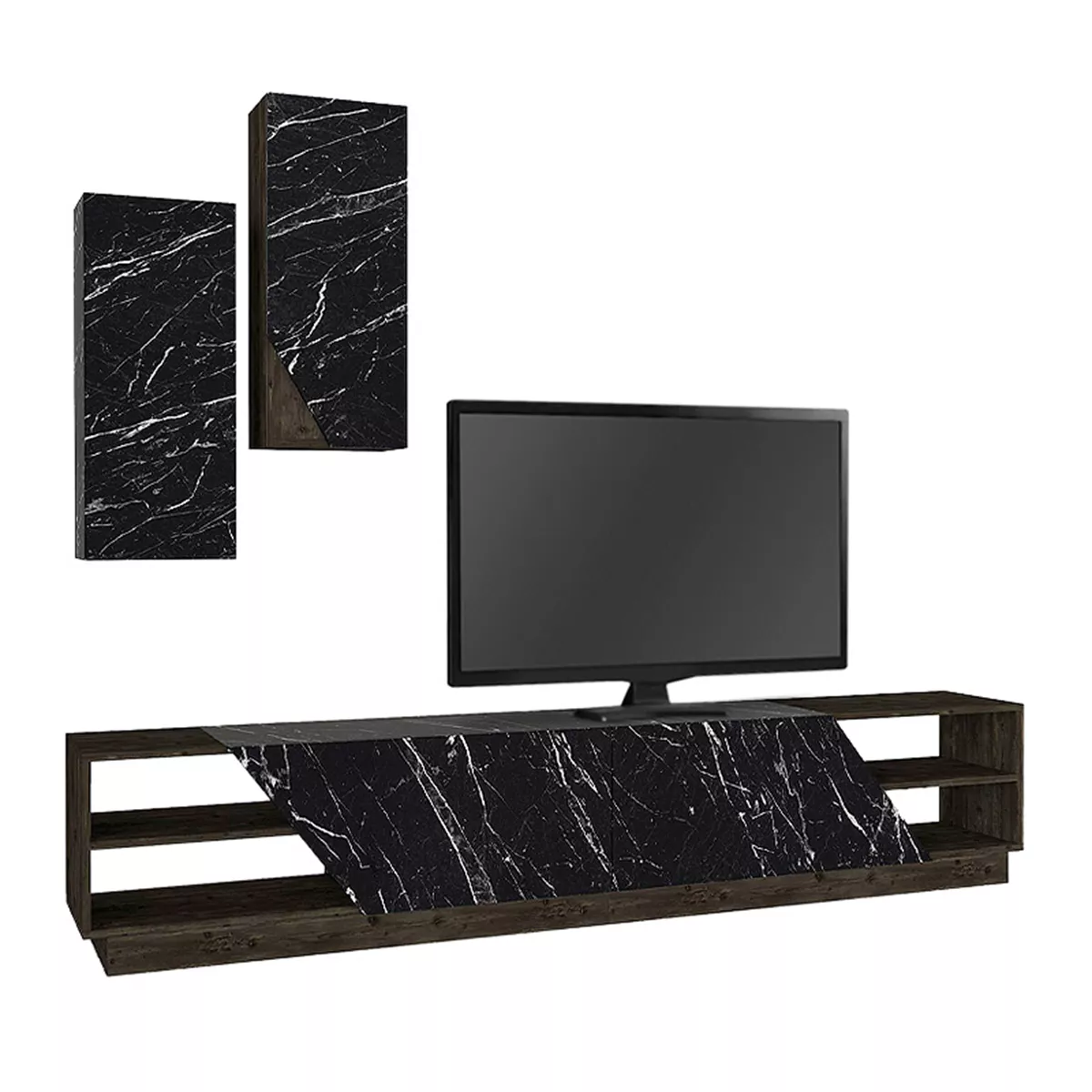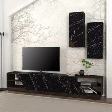 Σύνθεση τηλεόρασης River Megapap από μελαμίνη χρώμα μαύρο rebab - μαύρο εφέ μαρμάρου 240x36,6x47εκ.