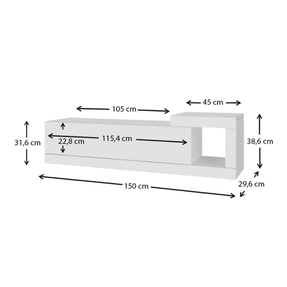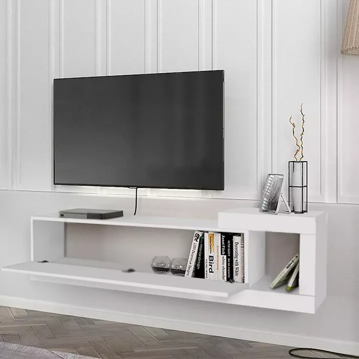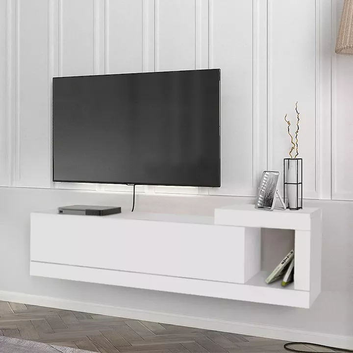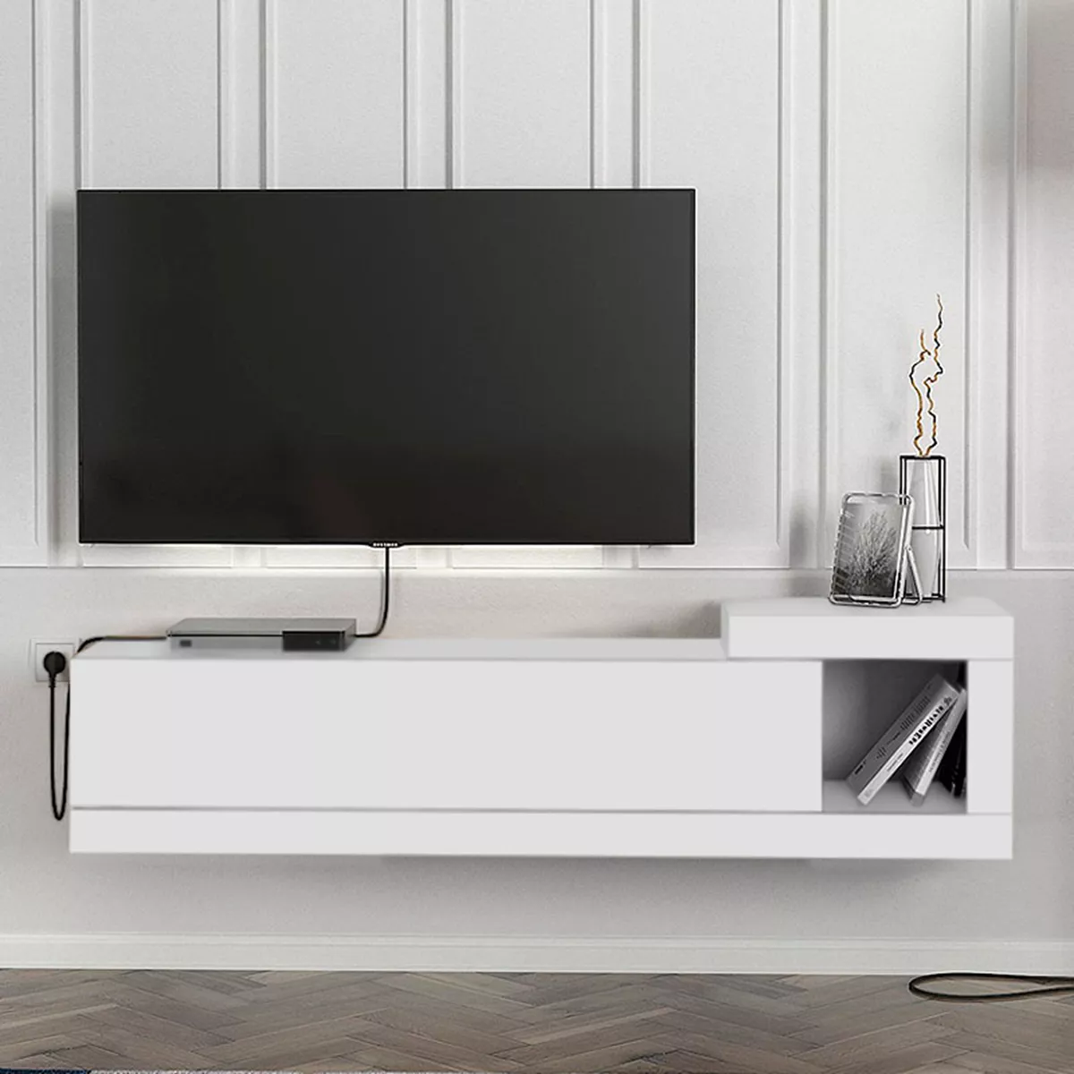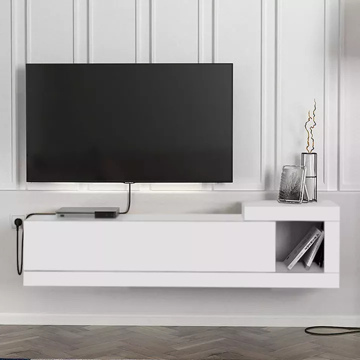 Έπιπλο τηλεόρασης επιτοίχιο Volare Megapap από μελαμίνη χρώμα λευκό 150x29,6x38,6εκ.