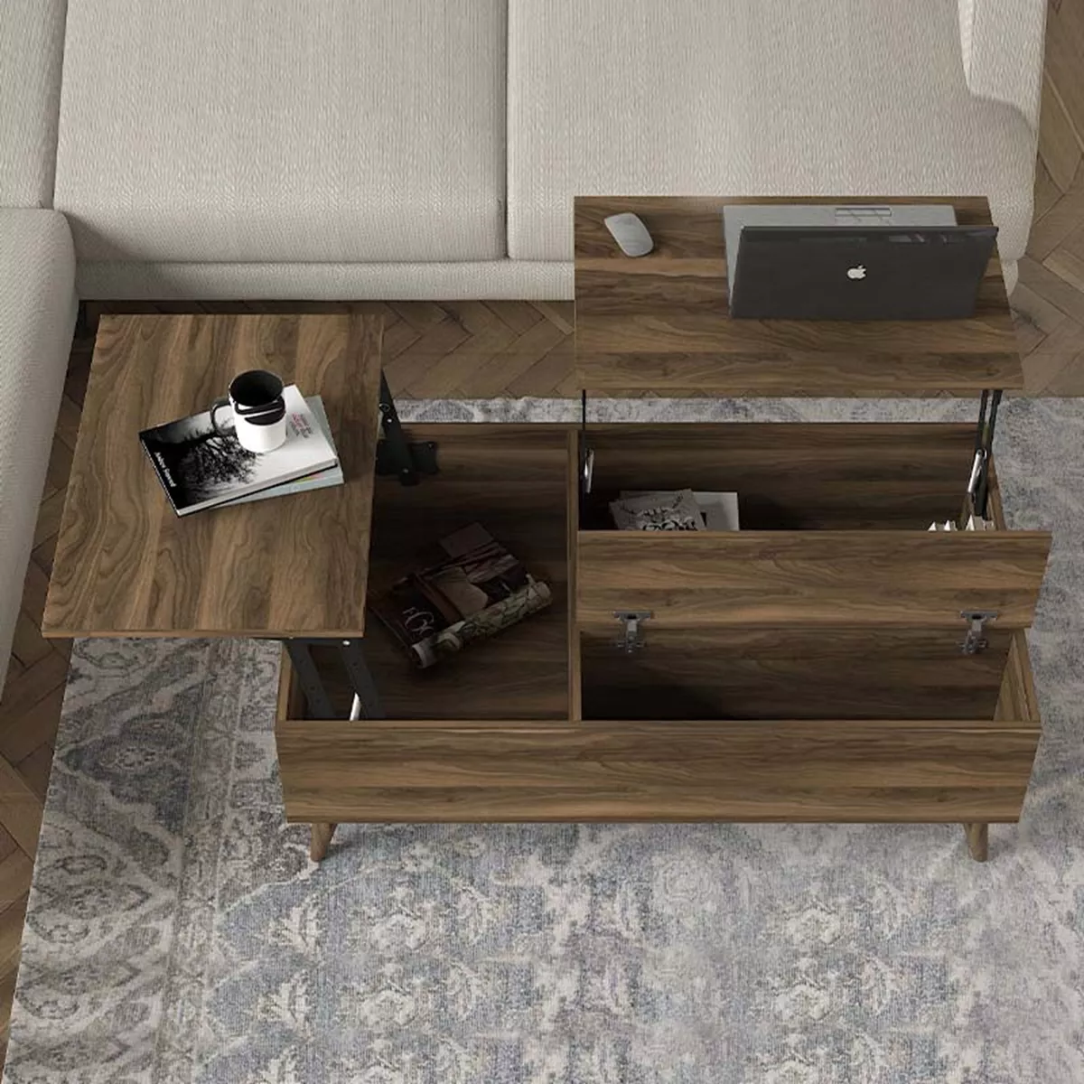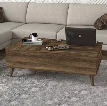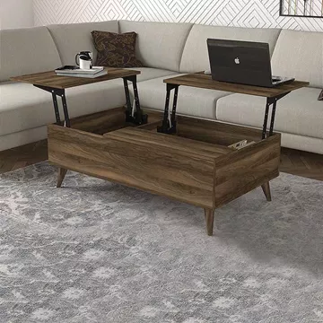 Τραπεζάκι σαλονιού Roy Megapap με σερβιτόρο από μελαμίνη χρώμα καρυδί 121x69x40εκ.
