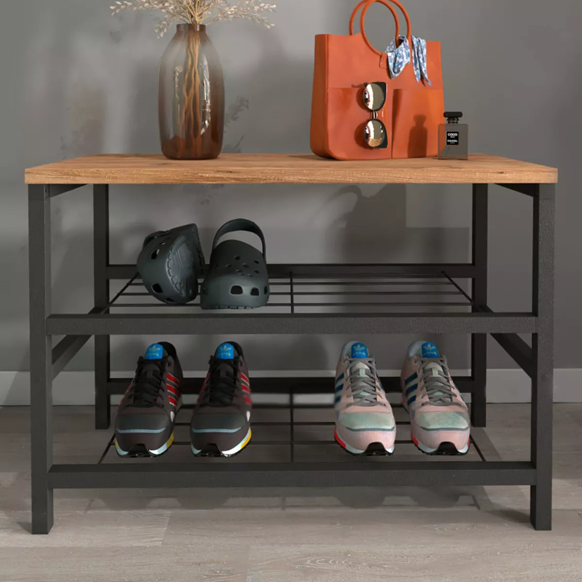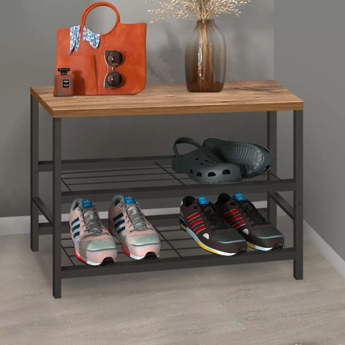 Παπουτσοθήκη Dalia Megapap 6 ζευγών μεταλλική - μελαμίνης χρώμα μαύρο - pine oak 65x30x45εκ.