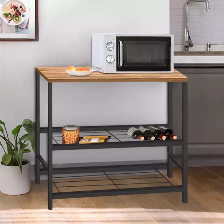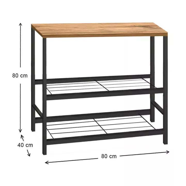 Βοηθητικό τραπεζάκι για φουρνάκι Mulligan Megapap μεταλλικό - μελαμίνης χρώμα μαύρο - pine oak 80x40x80εκ.