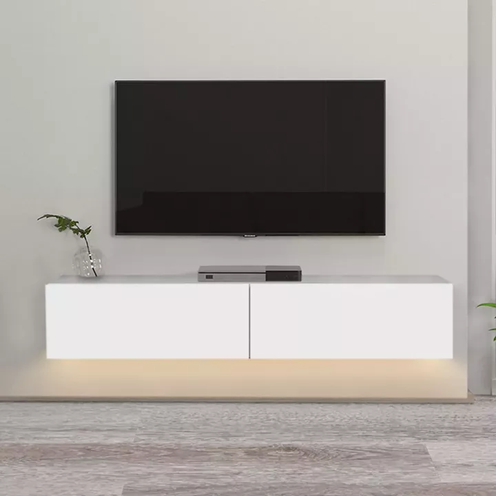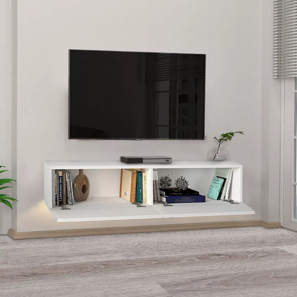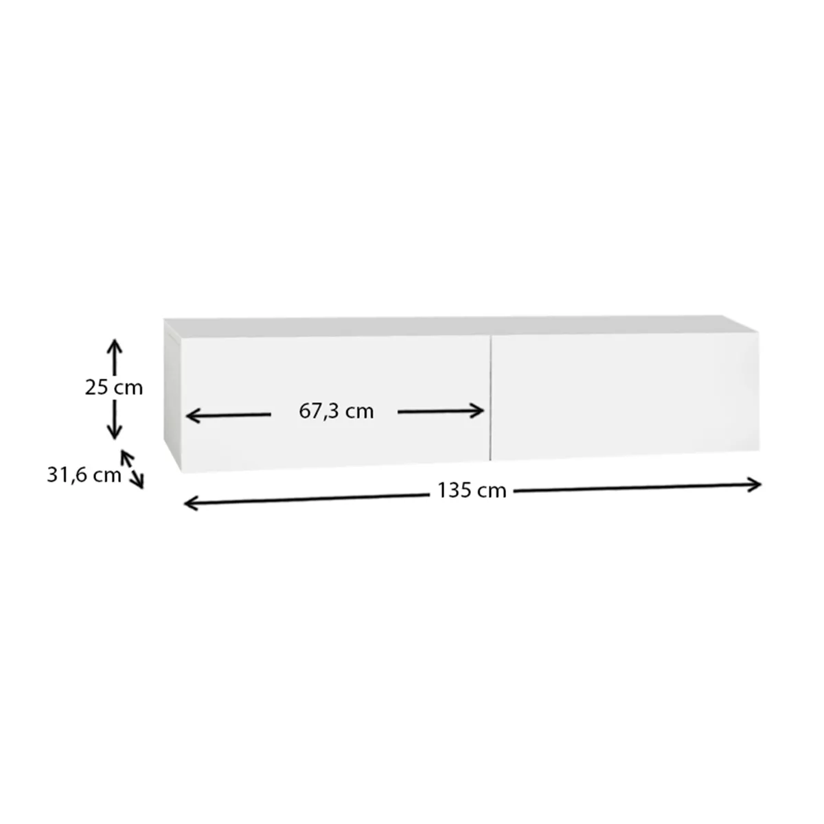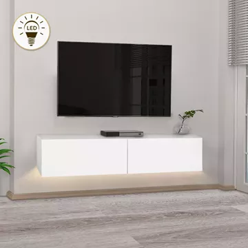 Έπιπλο τηλεόρασης επιτοίχιο Aristo Megapap από μελαμίνη με LED χρώμα λευκό 135x31,6x25εκ.