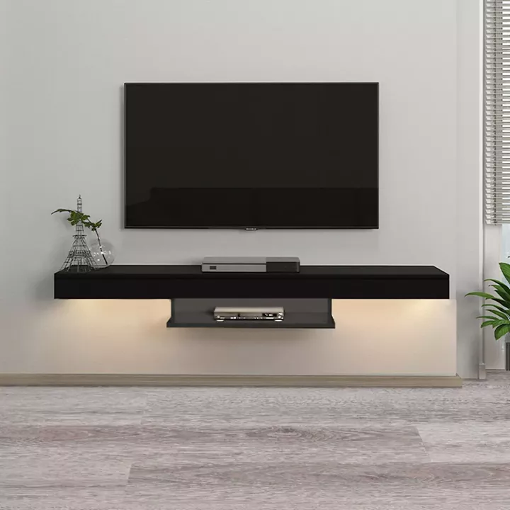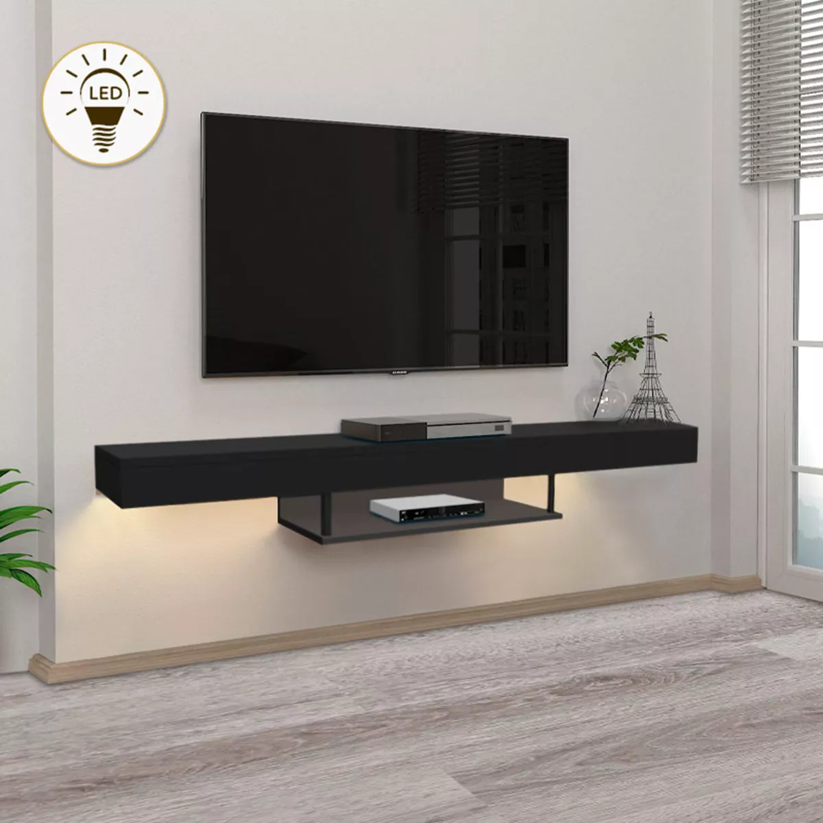 Έπιπλο τηλεόρασης επιτοίχιο Albares Megapap από μελαμίνη με LED χρώμα μαύρο 150x29,6x22εκ.