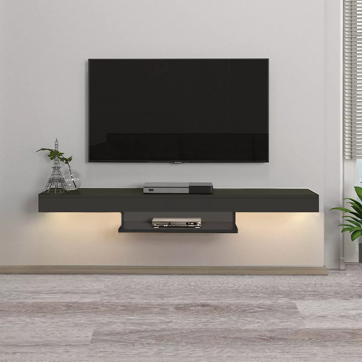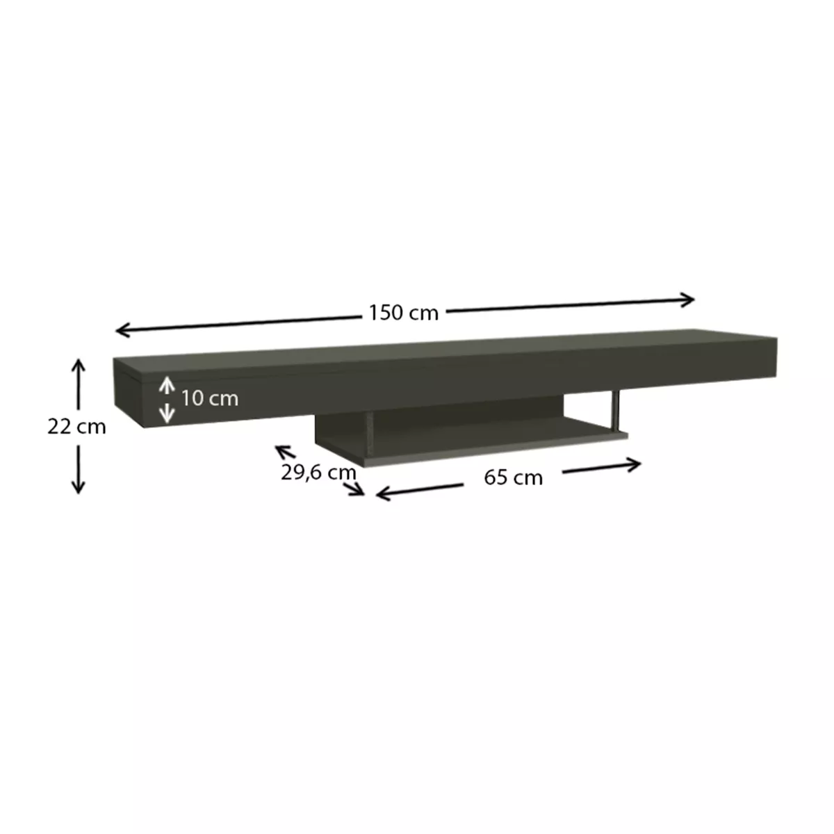 Έπιπλο τηλεόρασης επιτοίχιο Albares Megapap από μελαμίνη με LED χρώμα ανθρακί 150x29,6x22εκ.