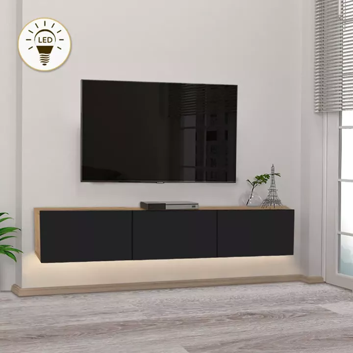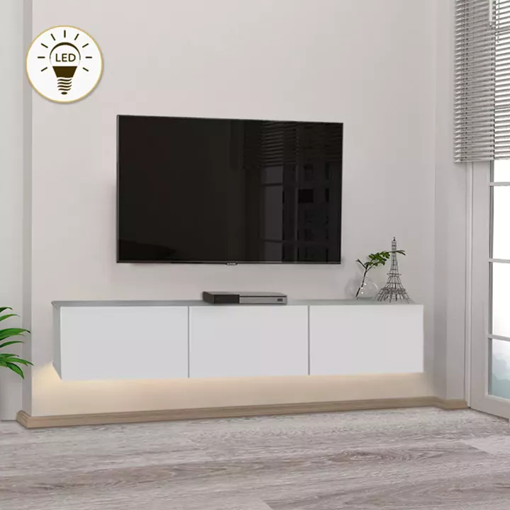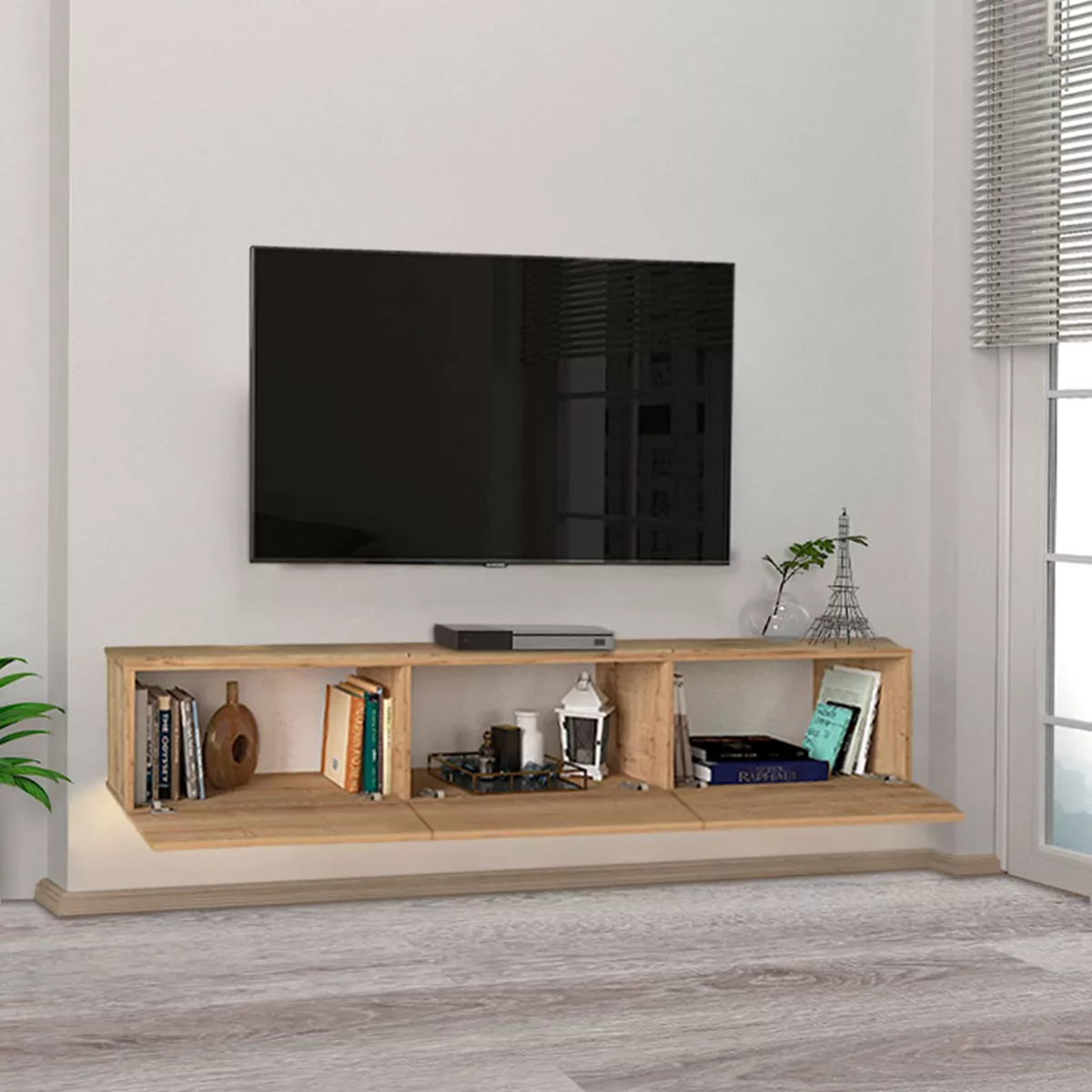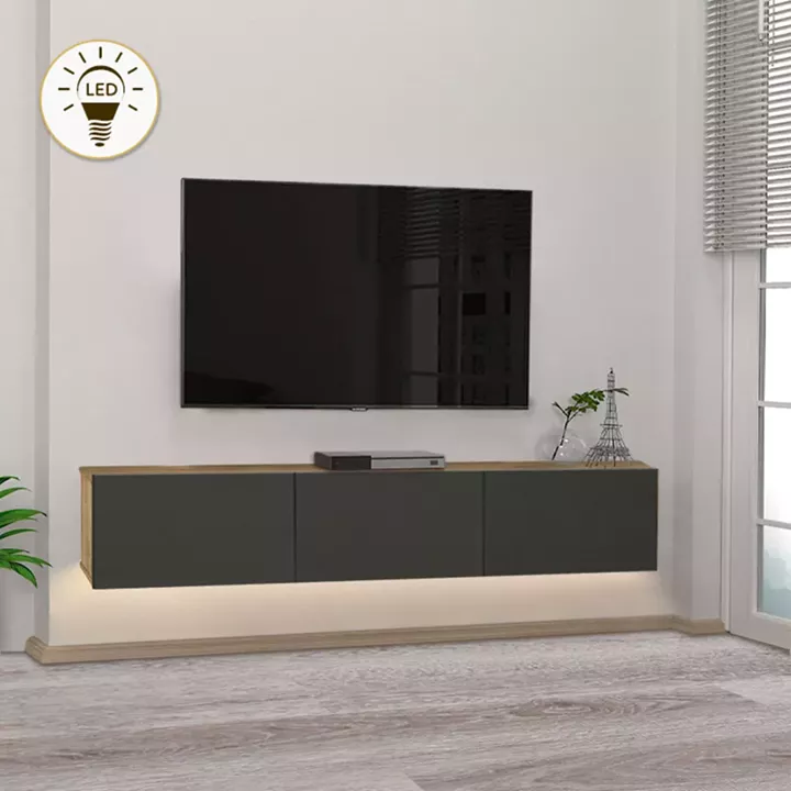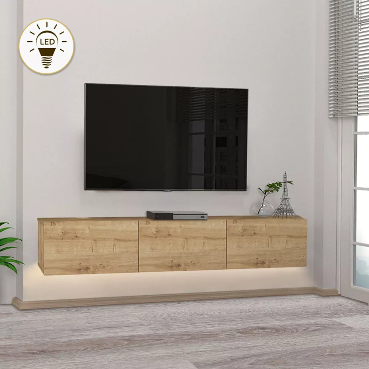Έπιπλο τηλεόρασης επιτοίχιο Damla Megapap από μελαμίνη με LED χρώμα sapphire oak 180x29,5x29,5εκ.