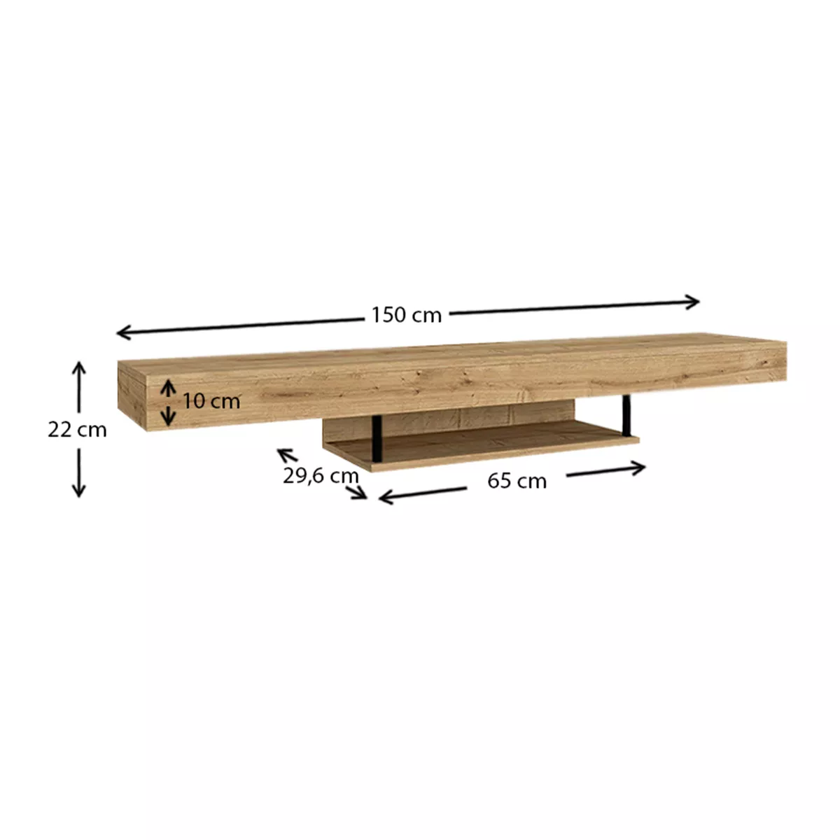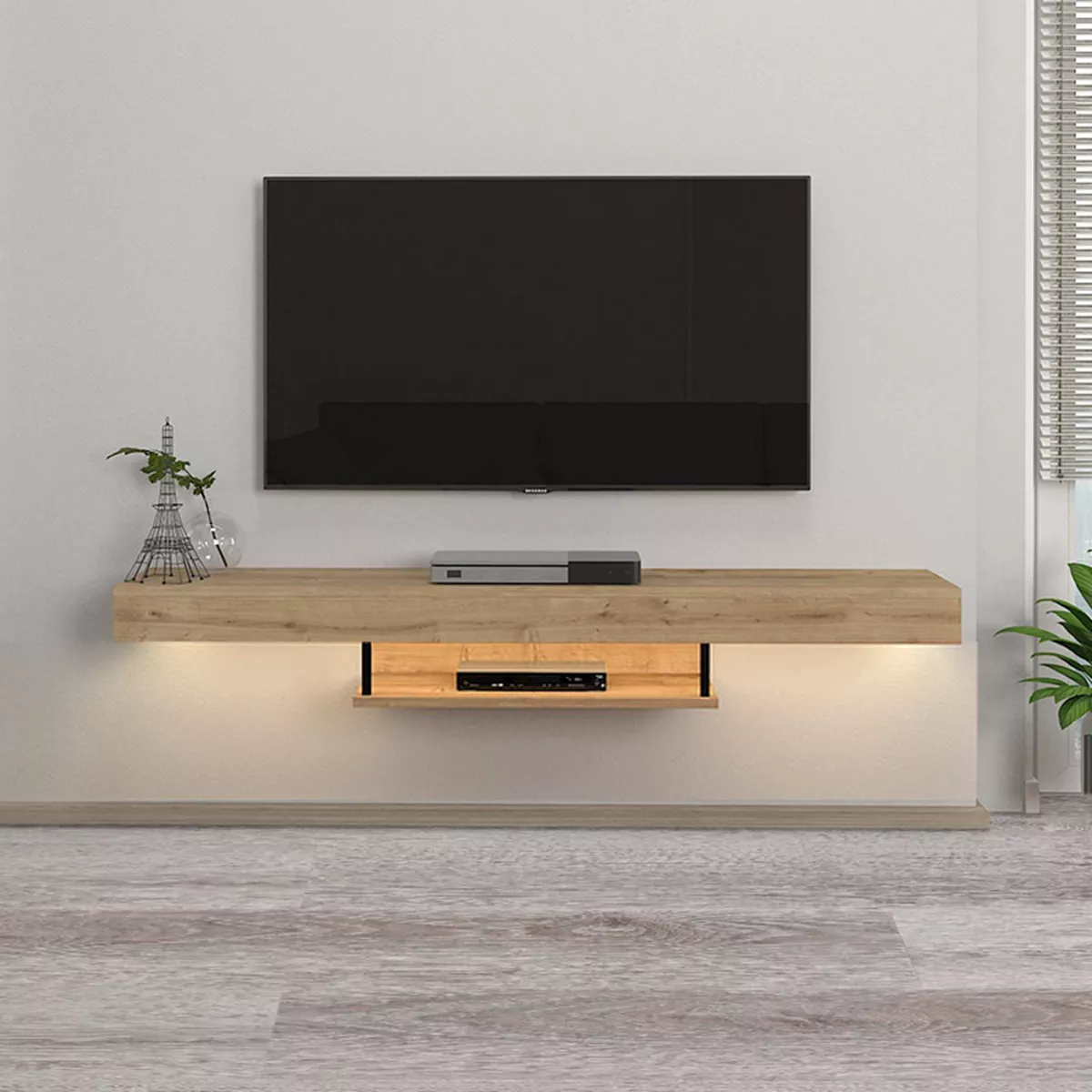 Έπιπλο τηλεόρασης επιτοίχιο Albares Megapap από μελαμίνη με LED χρώμα sapphire oak 150x29,6x22εκ.
