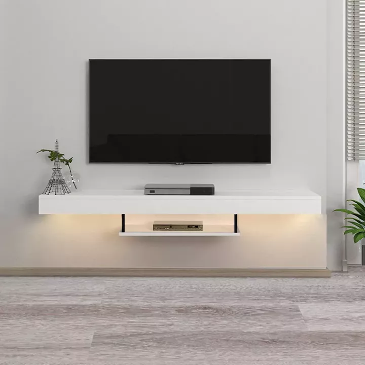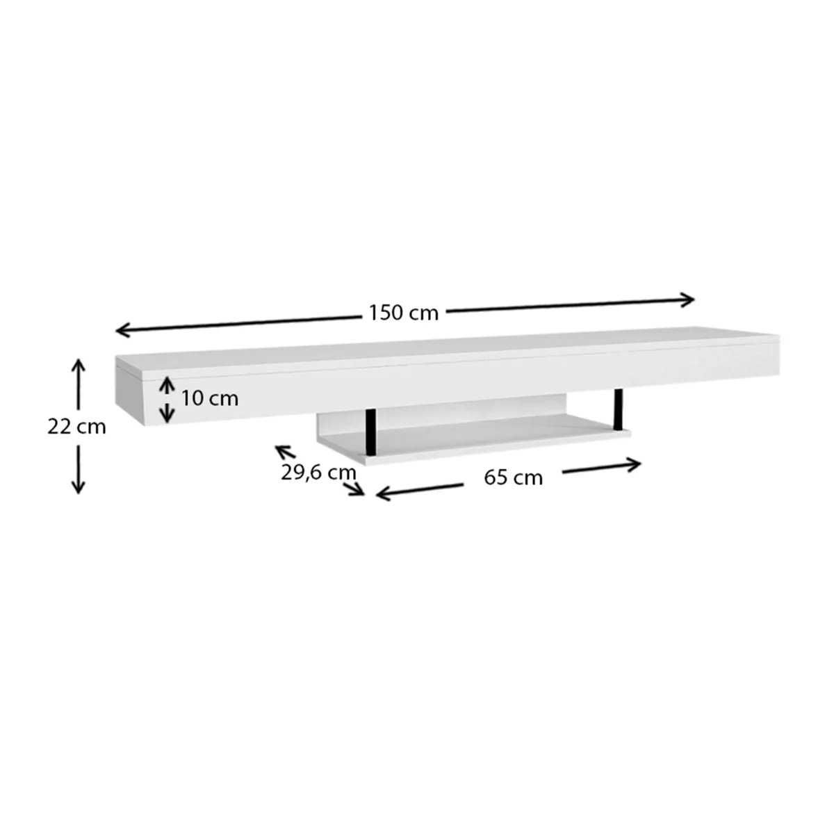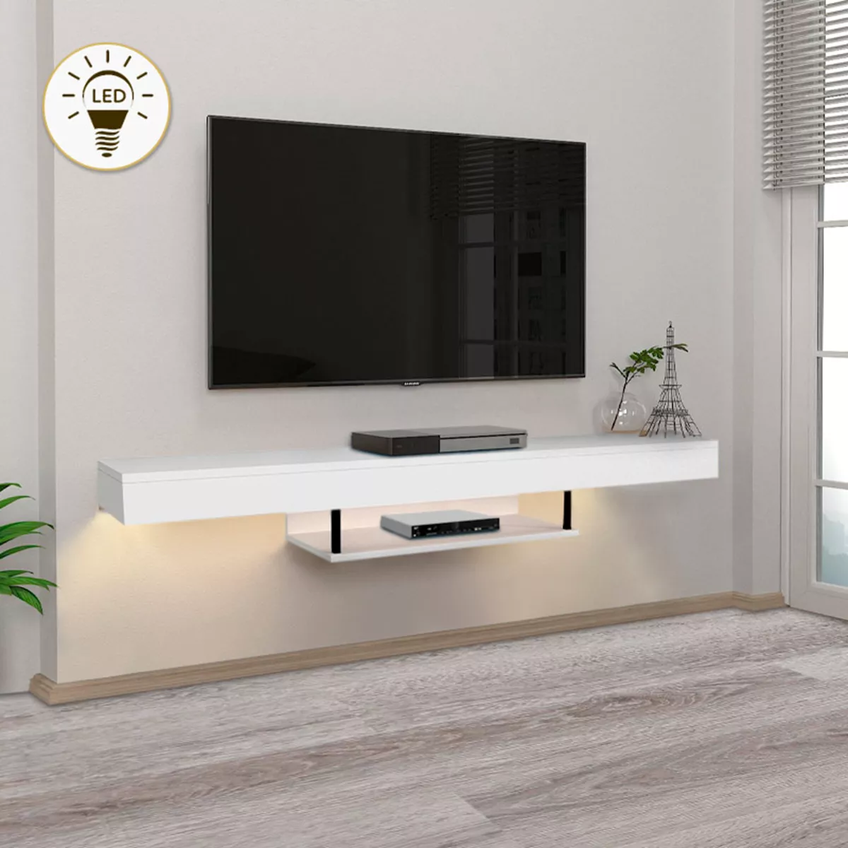 Έπιπλο τηλεόρασης επιτοίχιο Albares Megapap από μελαμίνη με LED χρώμα λευκό 150x29,6x22εκ.