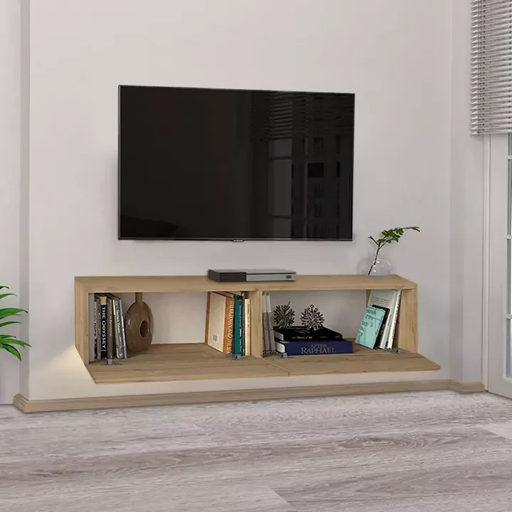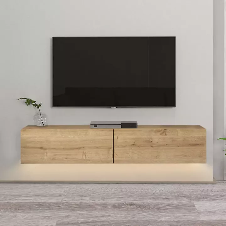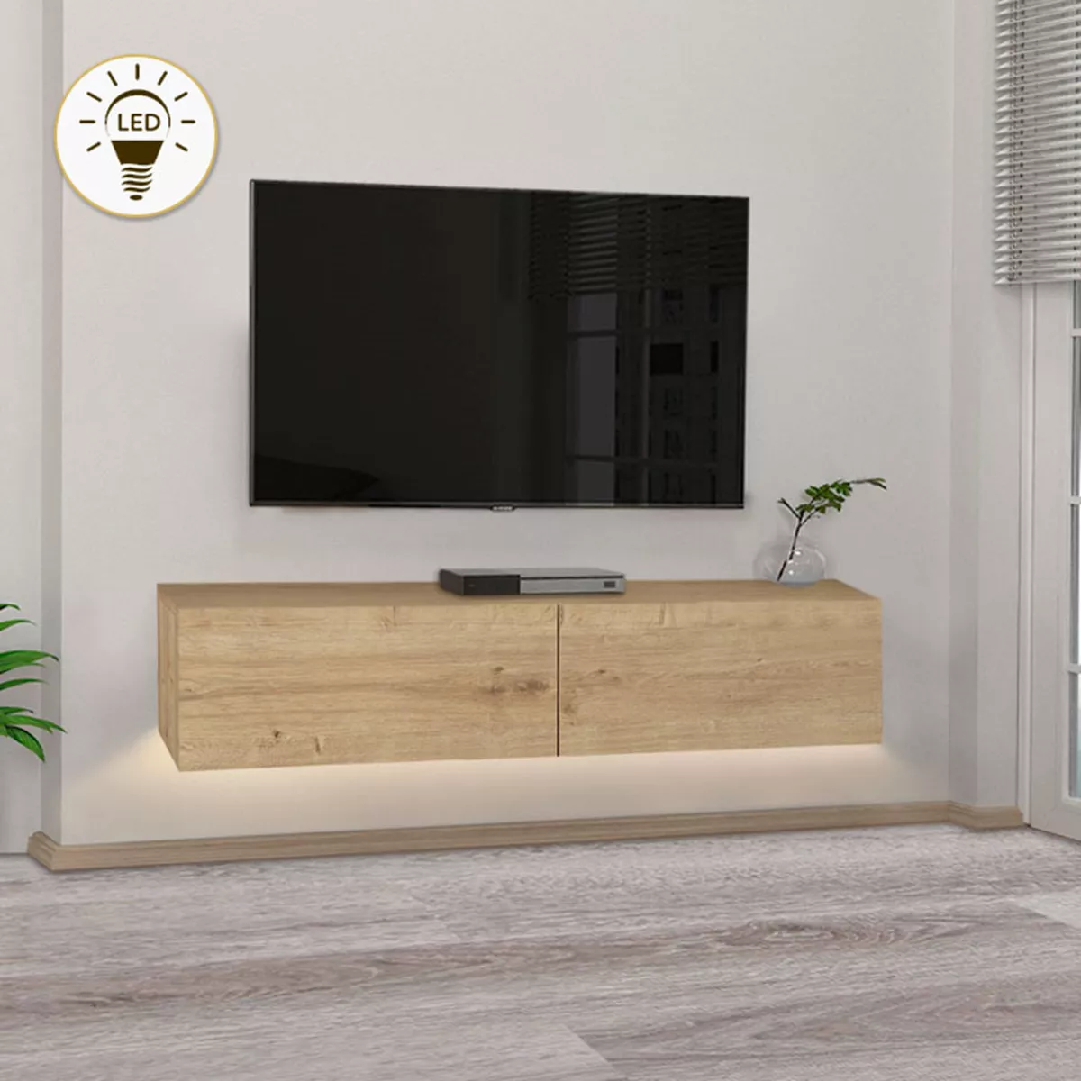 Έπιπλο τηλεόρασης επιτοίχιο Aristo Megapap από μελαμίνη με LED χρώμα sapphire oak 135x31,6x25εκ.