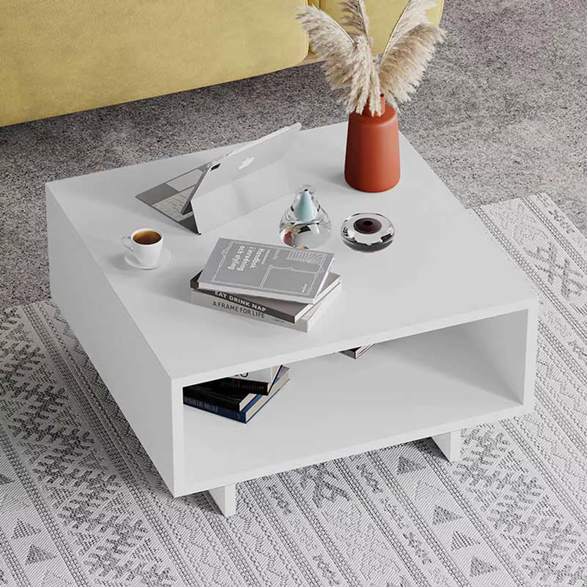 Τραπεζάκι σαλονιού Hola Megapap μελαμίνης χρώμα λευκό 60x60x32εκ.