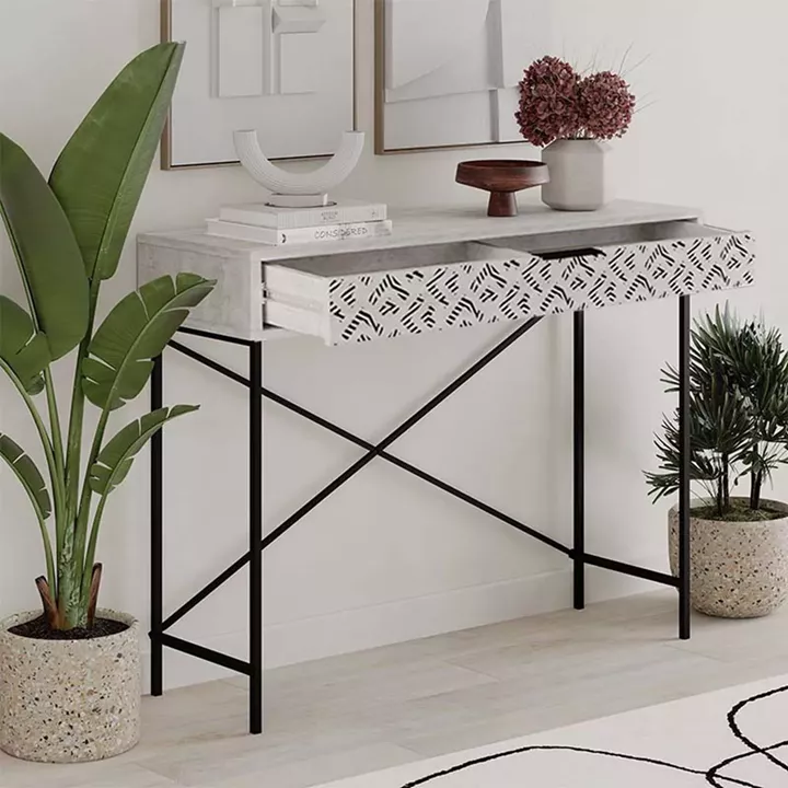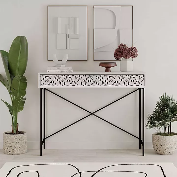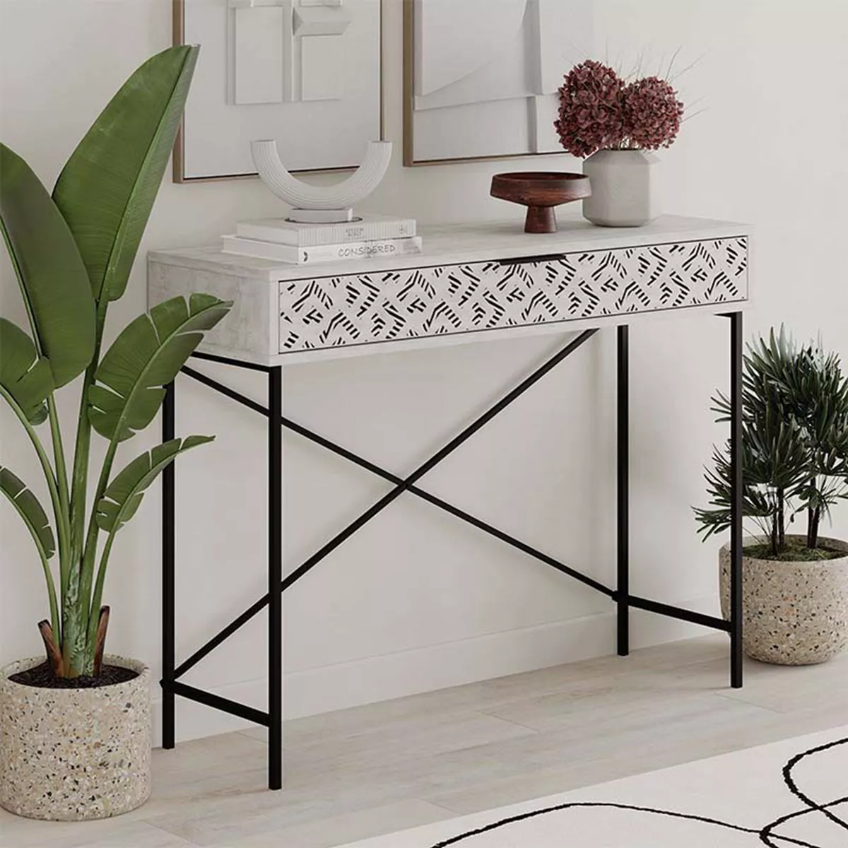 Κονσόλα Heaton Megapap μεταλλική - μελαμίνης χρώμα λευκό αντικέ 110x35,6x90εκ.