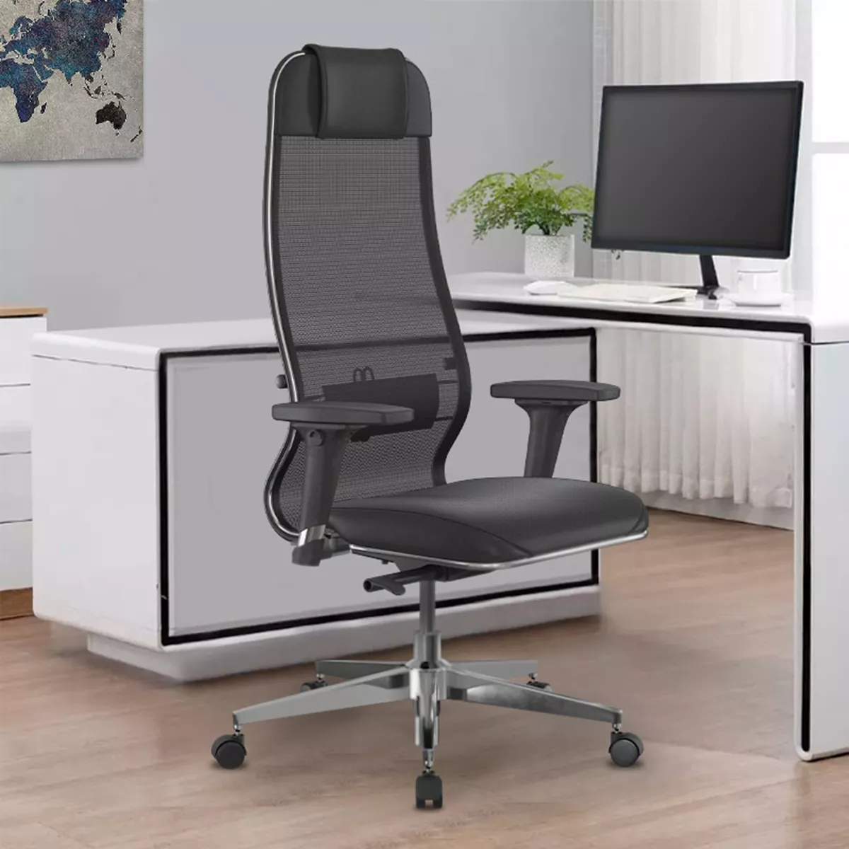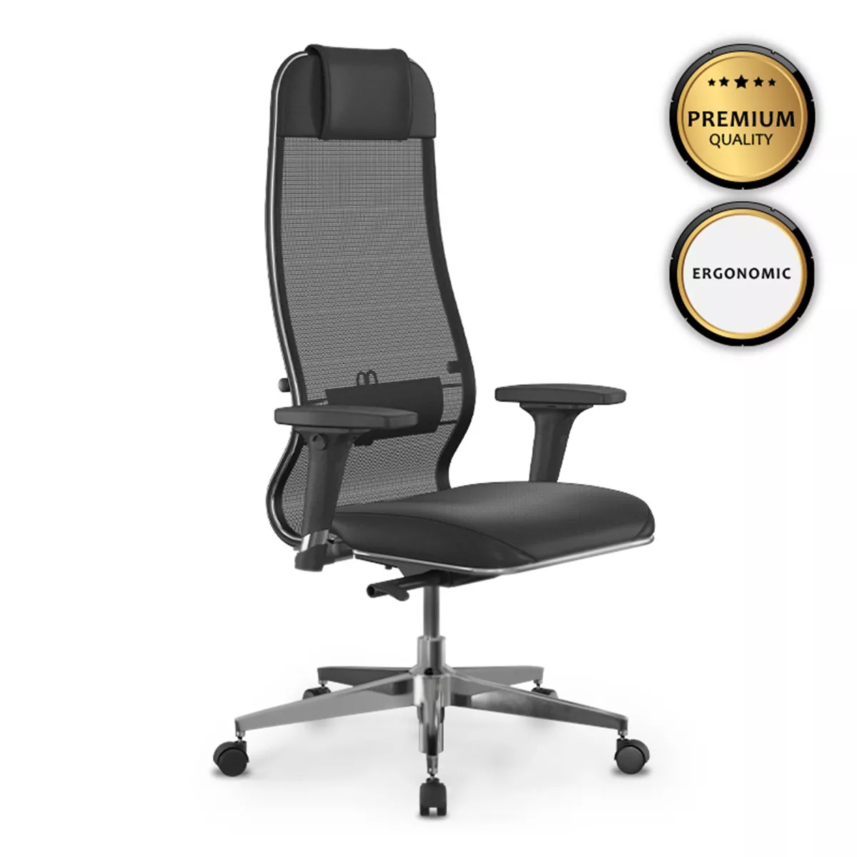 Καρέκλα γραφείου Synchrosit-10 Megapap εργονομική με διπλό ύφασμα Mesh και τεχνόδερμα χρώμα μαύρο 65x70x121/134εκ.
