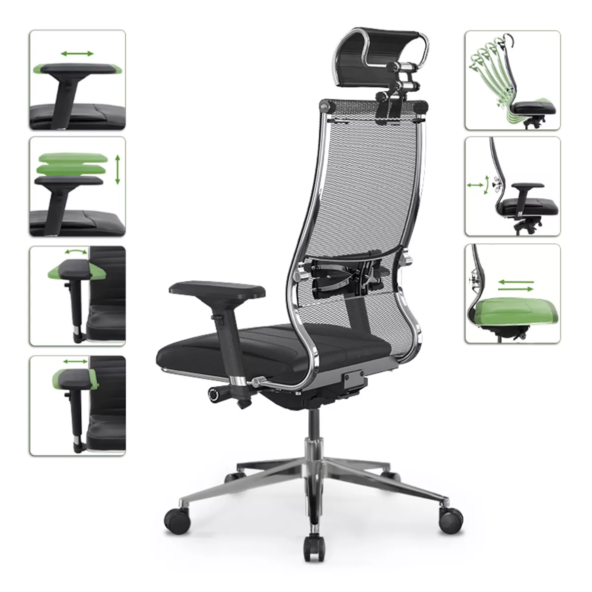 Καρέκλα γραφείου Samurai L2-6D Megapap εργονομική με ύφασμα TS Mesh και τεχνόδερμα χρώμα μαύρο 69x70x125/137εκ.